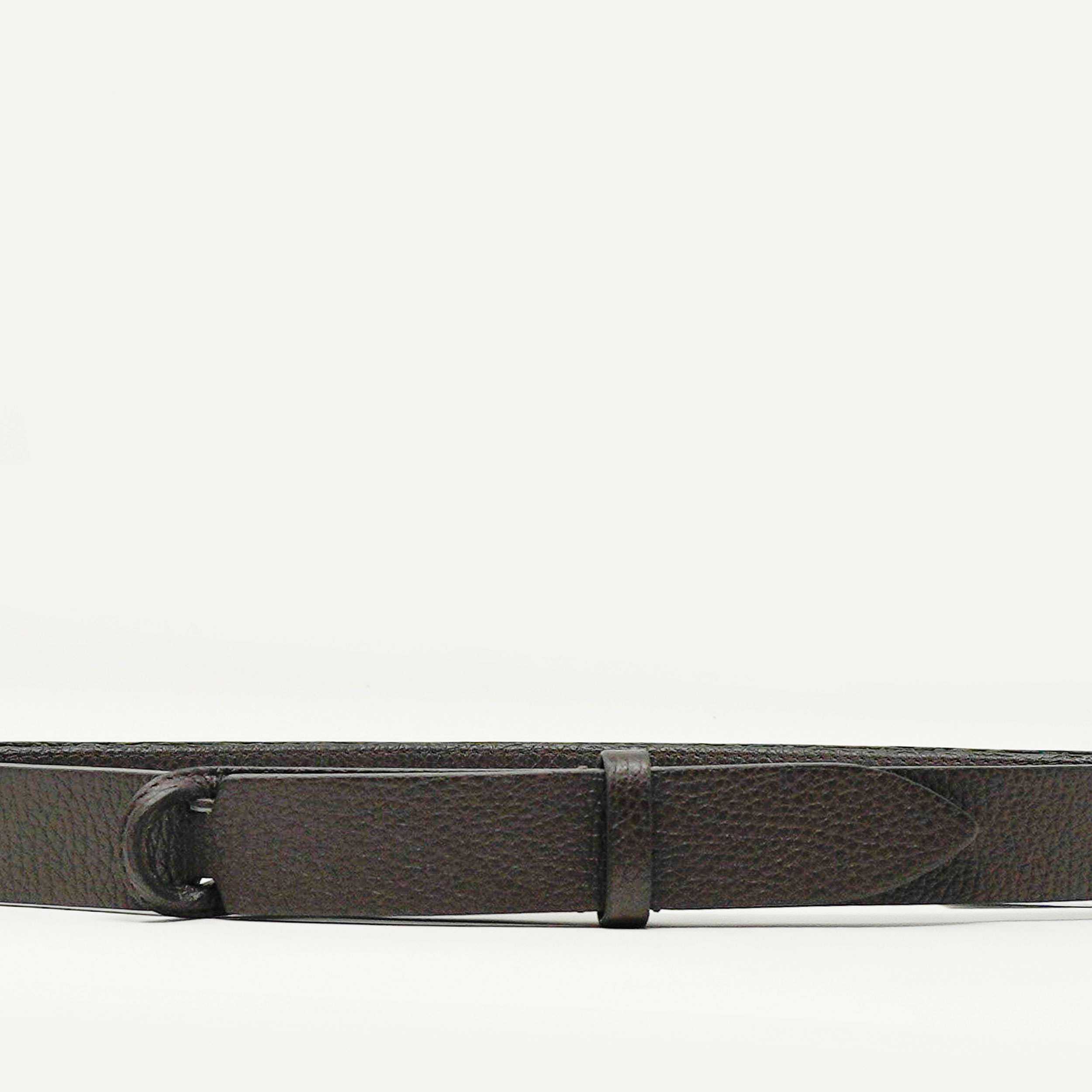 Add a touch of sophistication to your outfit with this hammered dark brown leather belt from ORCIANI. Made from high-quality leather, this belt is both durable and stylish, perfect for any formal or casual occasion. The unique nobuckle design makes it easy to wear and adjust, while the brown color complements any outfit. Upgrade your wardrobe today with this must-have accessory.