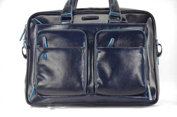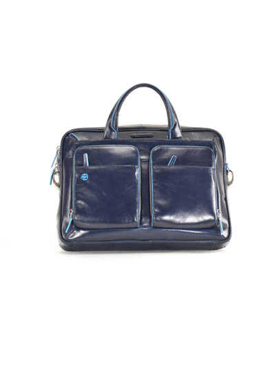 Stay organized and stylish with this elegant blue leather briefcase by Piquadro. Perfect for both men and women, this handbag is made of high-quality leather and features multiple compartments for all your essentials. Carry your laptop, documents, and more in style with this sleek and practical accessory. Upgrade your professional look with the Piquadro briefcase today!