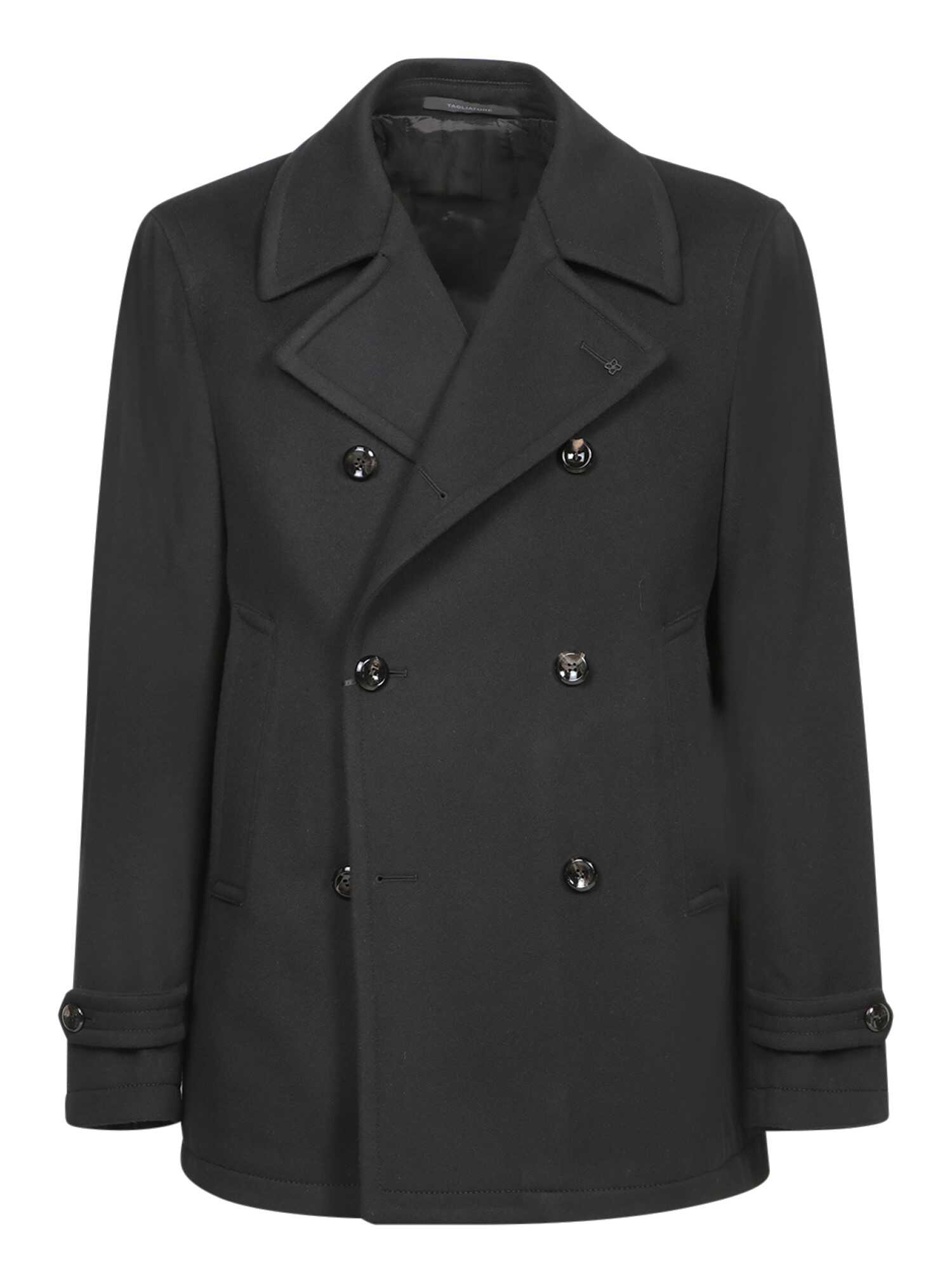 Elevate your style with the TAGLIATORE Black Three-quarter Coat. Crafted from a luxurious wool-cashmere blend, this double-breasted coat features contrasting buttons and an elegant three-quarter cut, perfect for a refined urban look.
