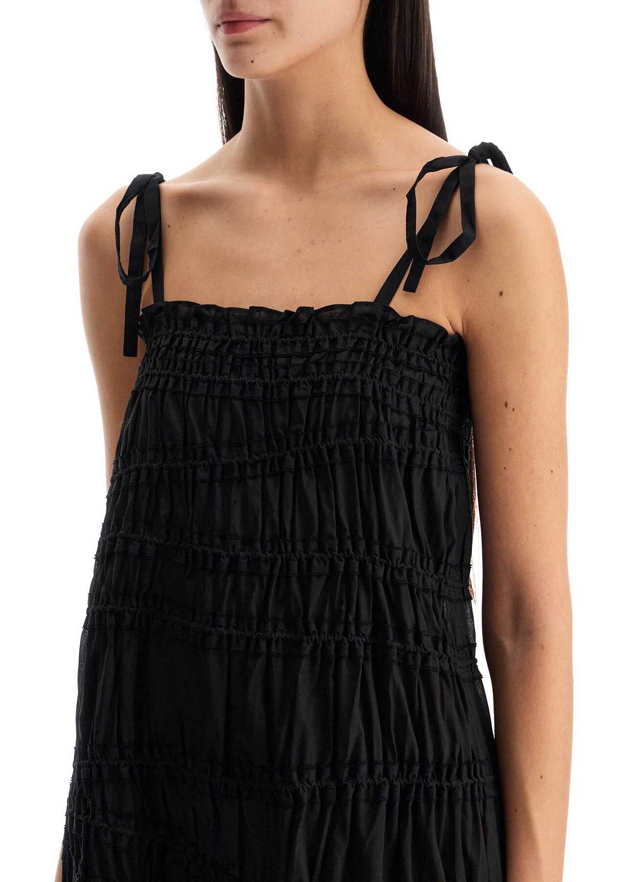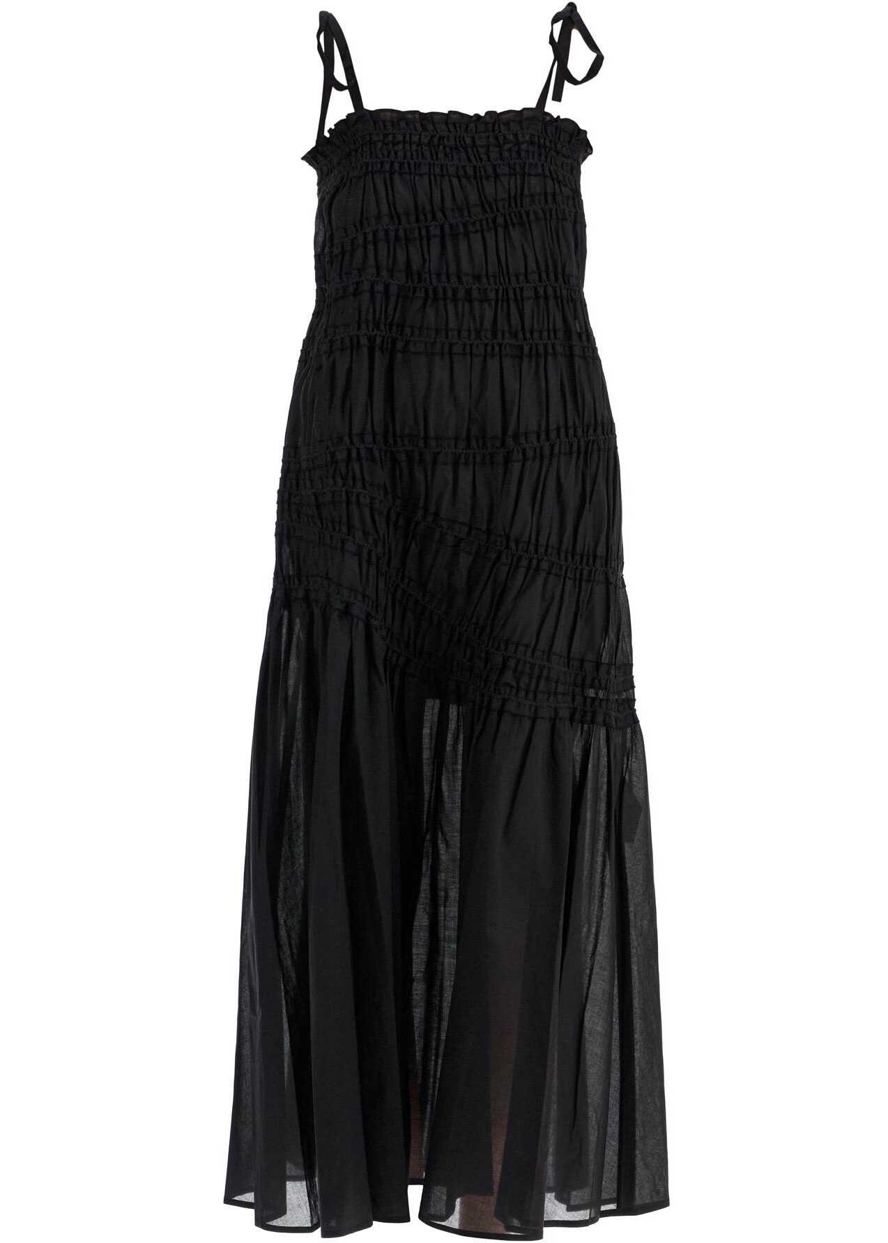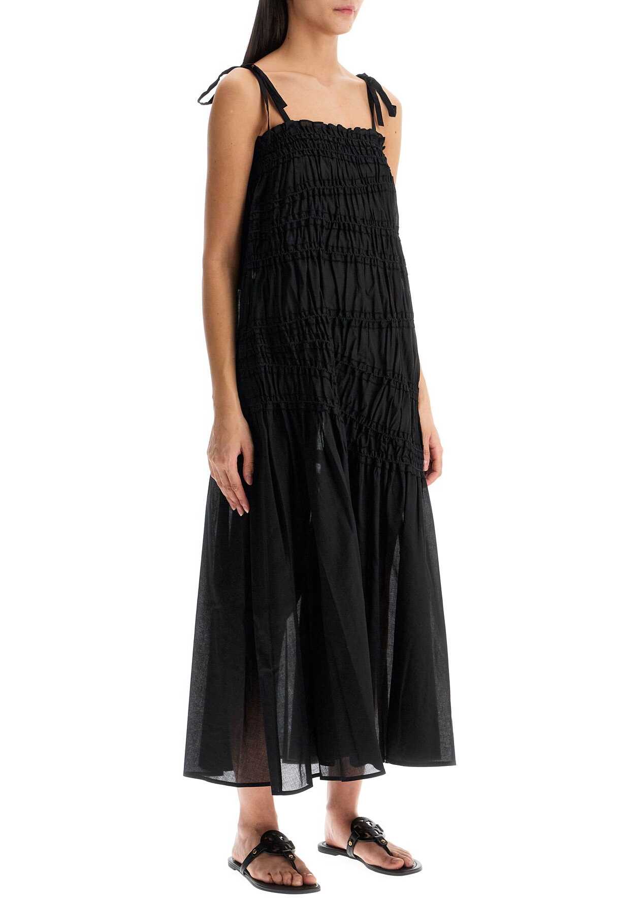 This midi dress by Tory Burch is made of pure cotton voile, featuring an asymmetrical smocked pattern and finished with ruffles on the square neckline. Unlined and complete with thin tie-up straps. Flared fit. The model is 177 cm tall and wears size S.