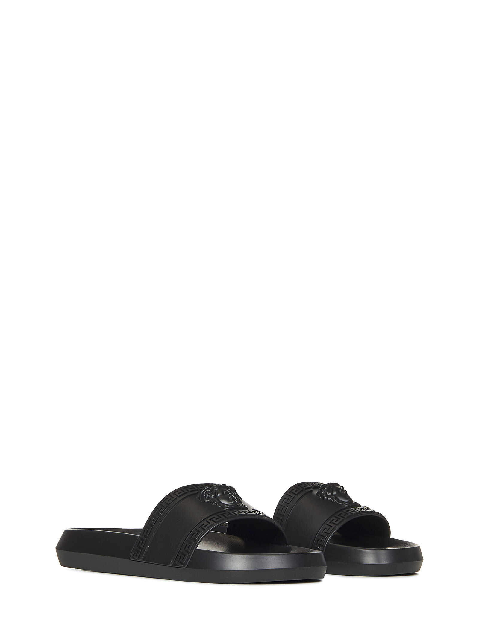 Palazzo slippers in black rubber with three-dimensional Medusa and Greca border.