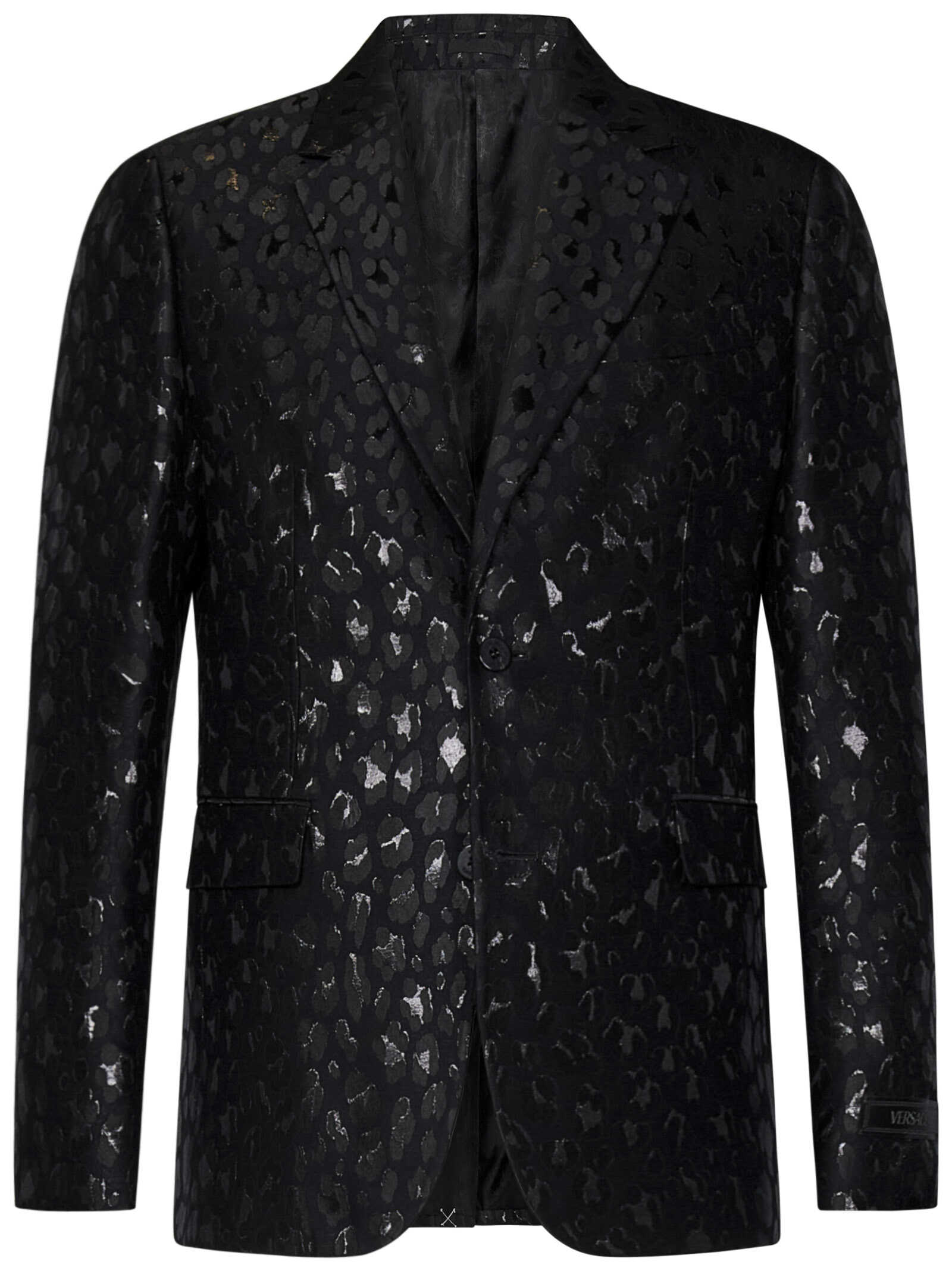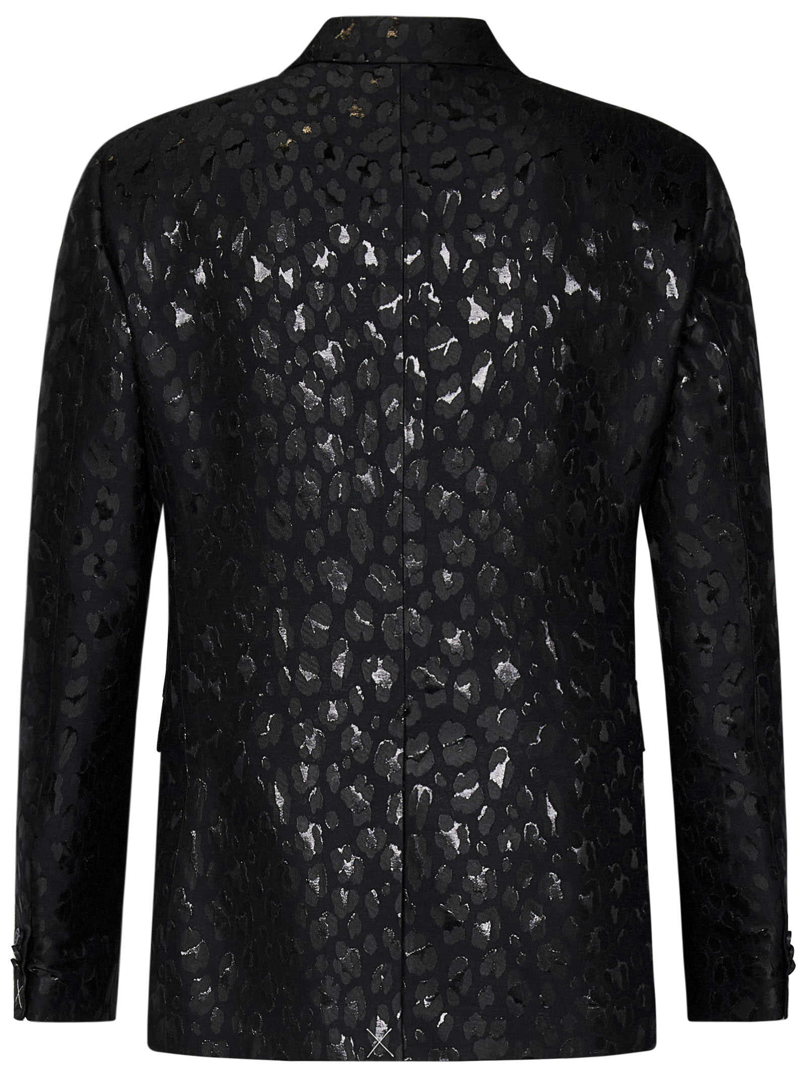 Leopard black wool blend single-breasted blazer with lurex Wild Leopard jacquard pattern.