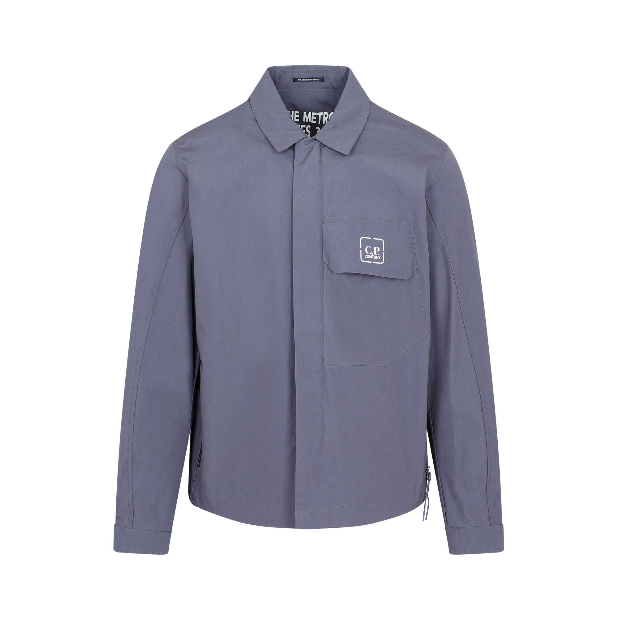 Elevate your style with this CP Company ombre blue jacket from the Metropolis series. Crafted from 100% cotton, it features a shirt collar, chest pocket with logo detail, velcro straps on cuffs, and a round hem. Stay on trend with this versatile and stylish piece. Perfect for any fashion-forward man.