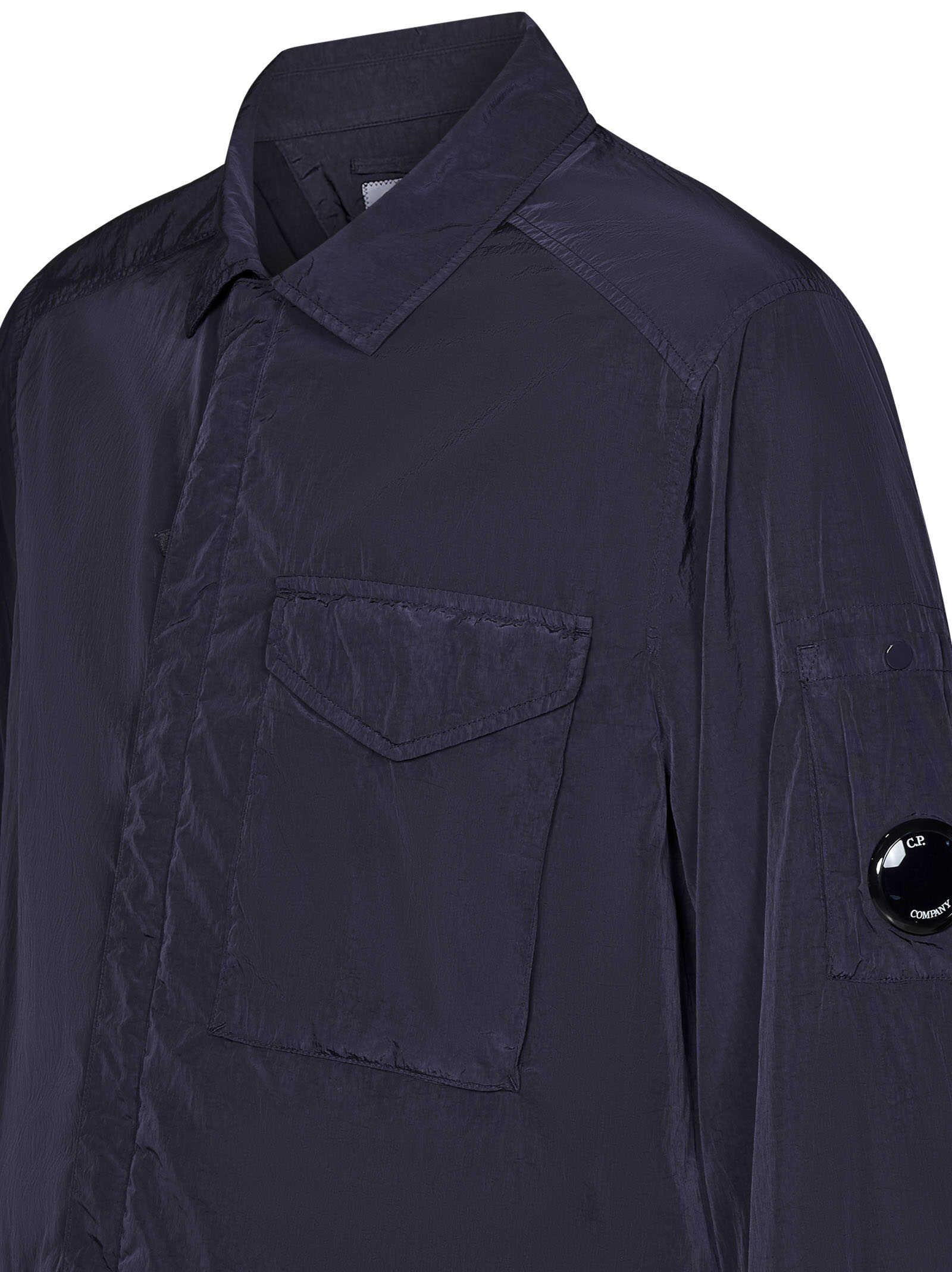 Midnight blue nylon overshirt with shirt collar and Lens detail on the left sleeve.