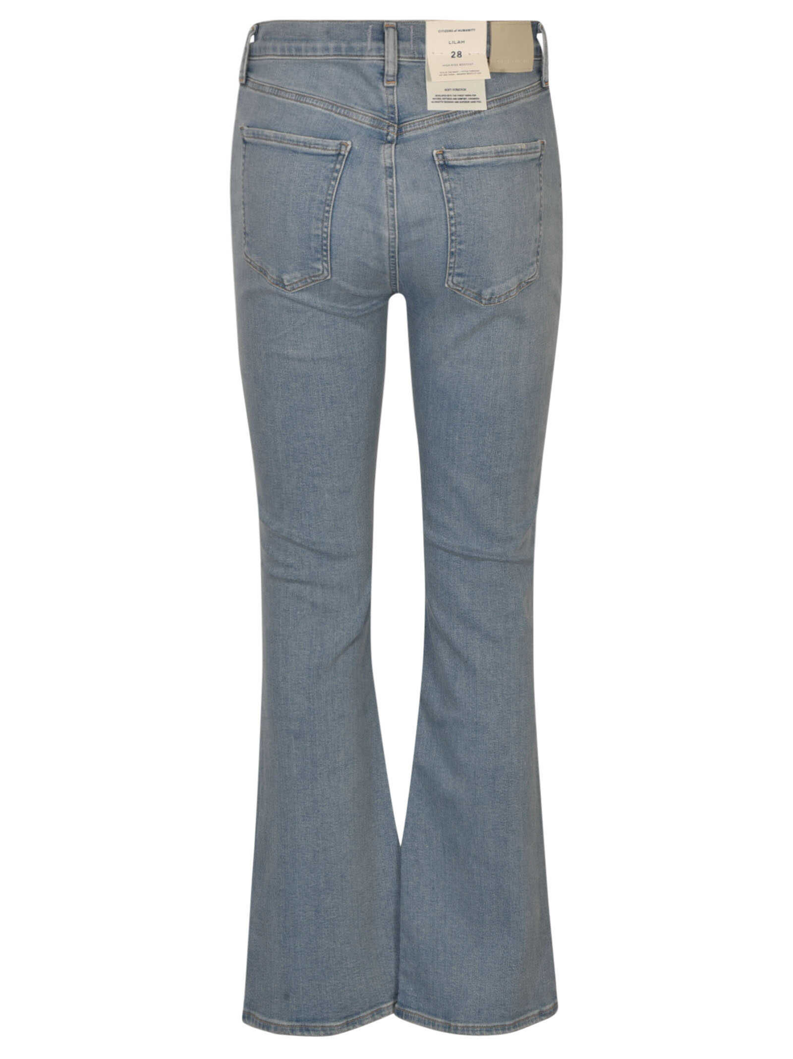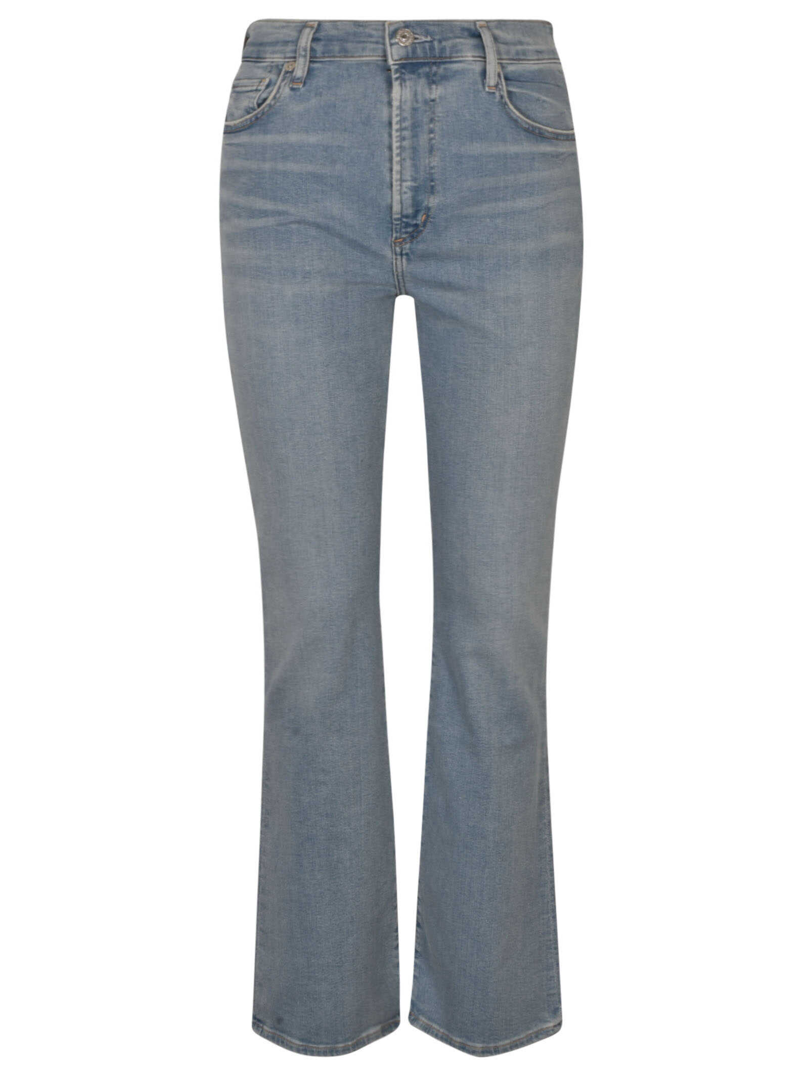 Bring a touch of casual elegance to your wardrobe with the Citizens of Humanity Jeans. Made with 98% cotton and 2% spandex, these jeans feature a light blue, washed denim with a whiskering effect, flared legs, and classic five pockets. The front button and zip fastening ensure a secure fit. Perfect for any occasion, these jeans are a must-have for any fashion-forward woman. Order yours today!