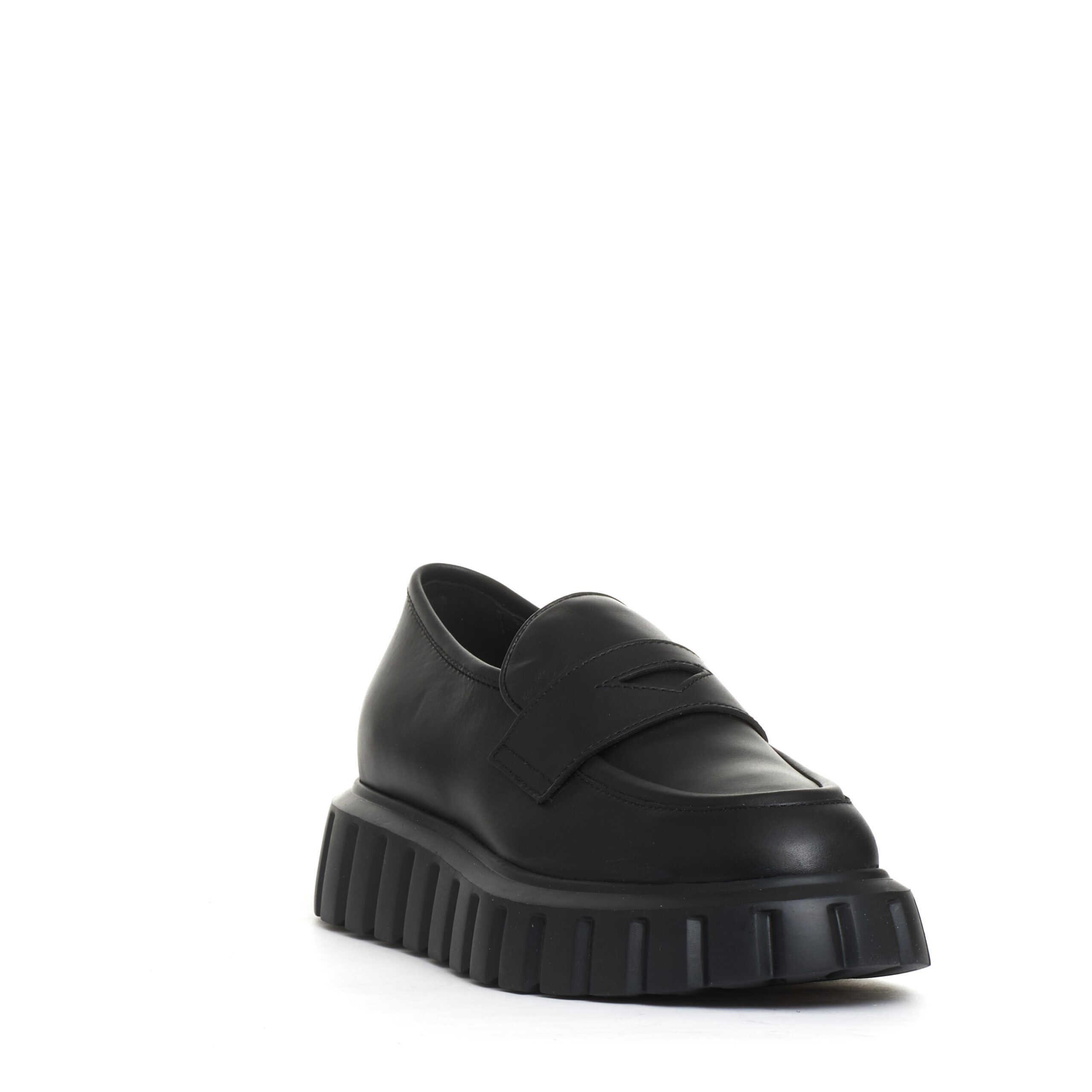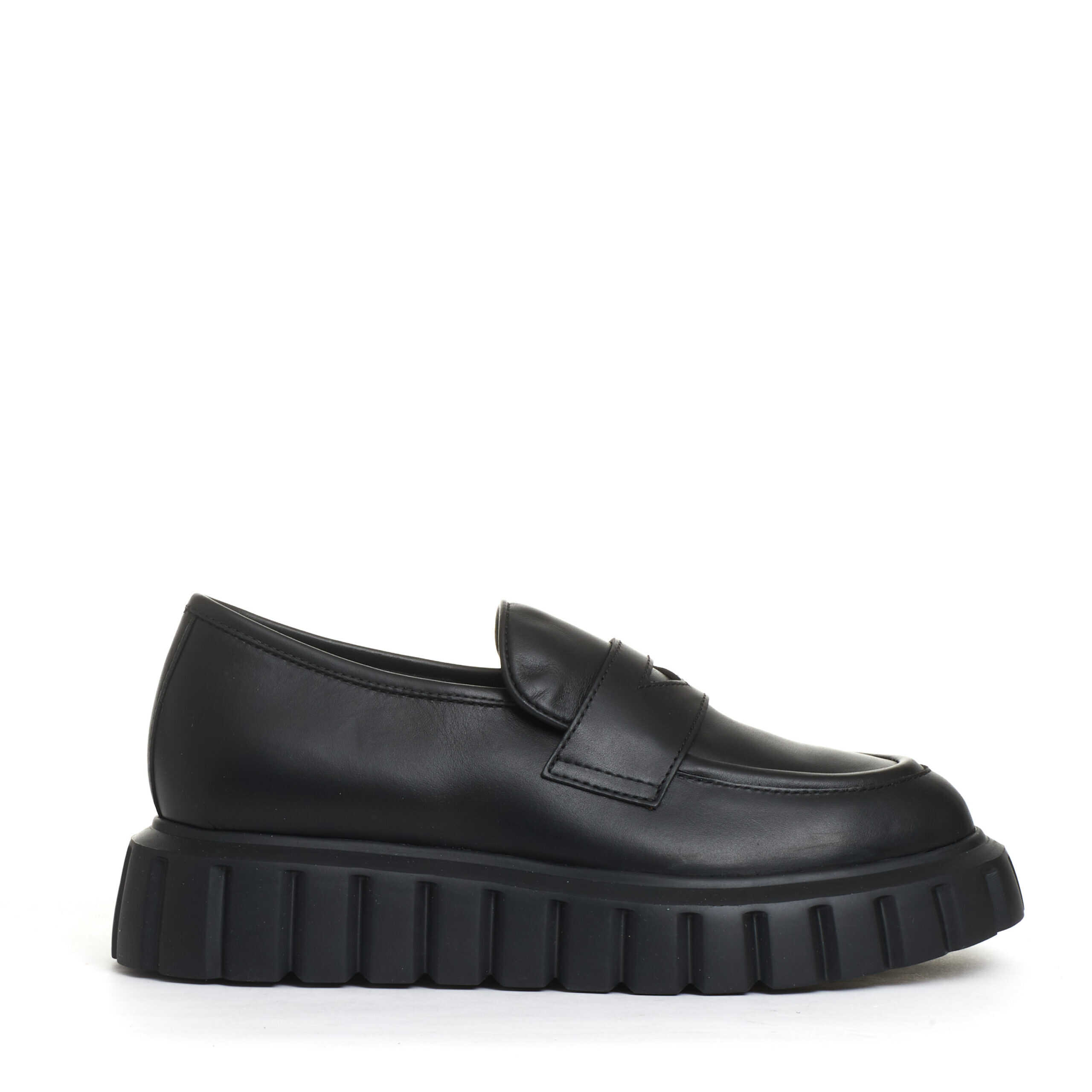Step into elegance with our Black Leather Loafer featuring a stylish striped rubber sole. Perfect for any occasion, this chic footwear combines comfort and sophistication to elevate your wardrobe. Experience the perfect blend of fashion and function.