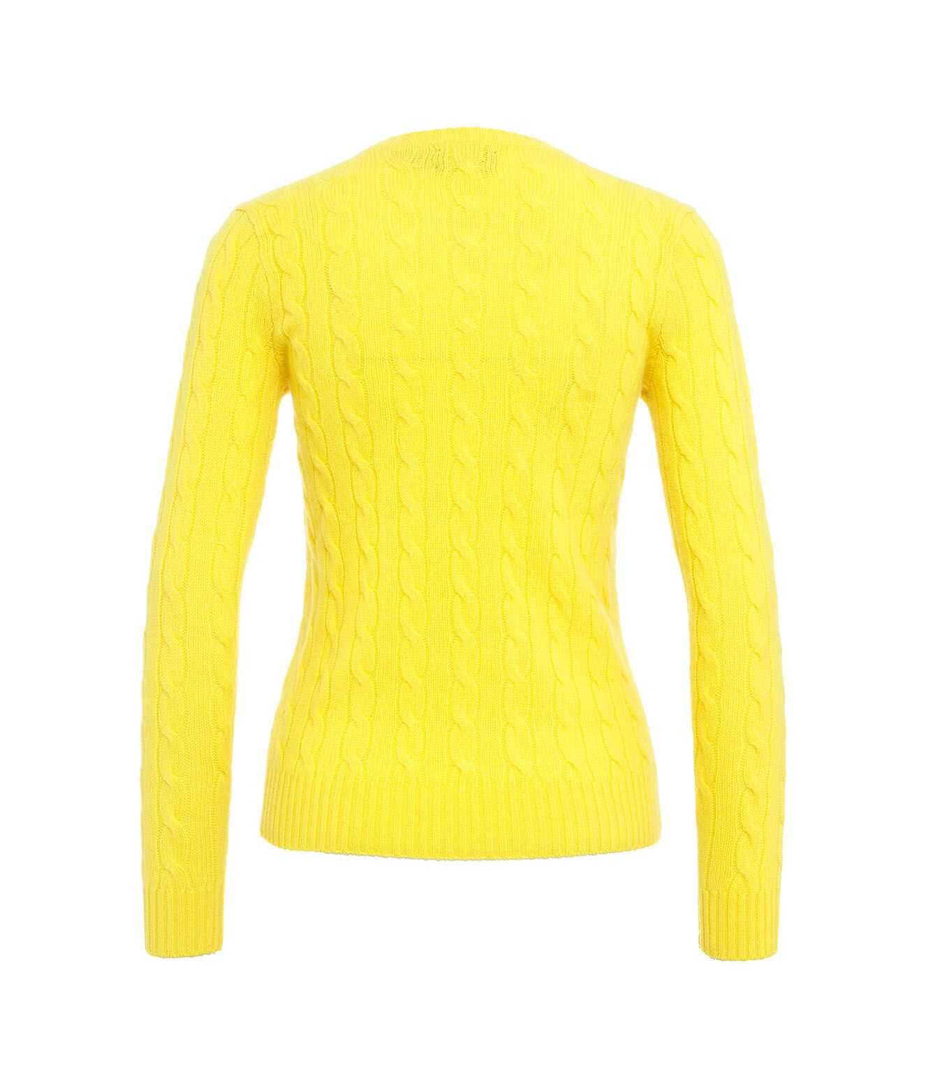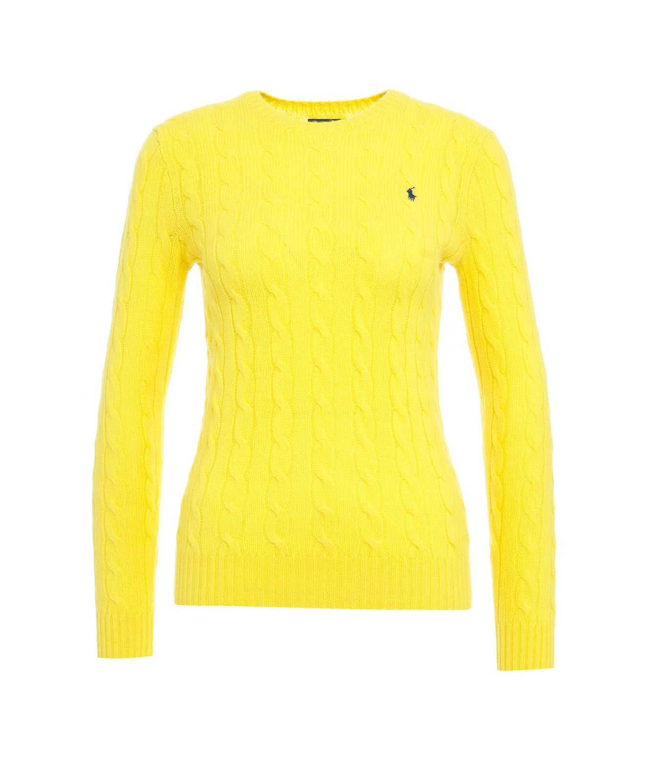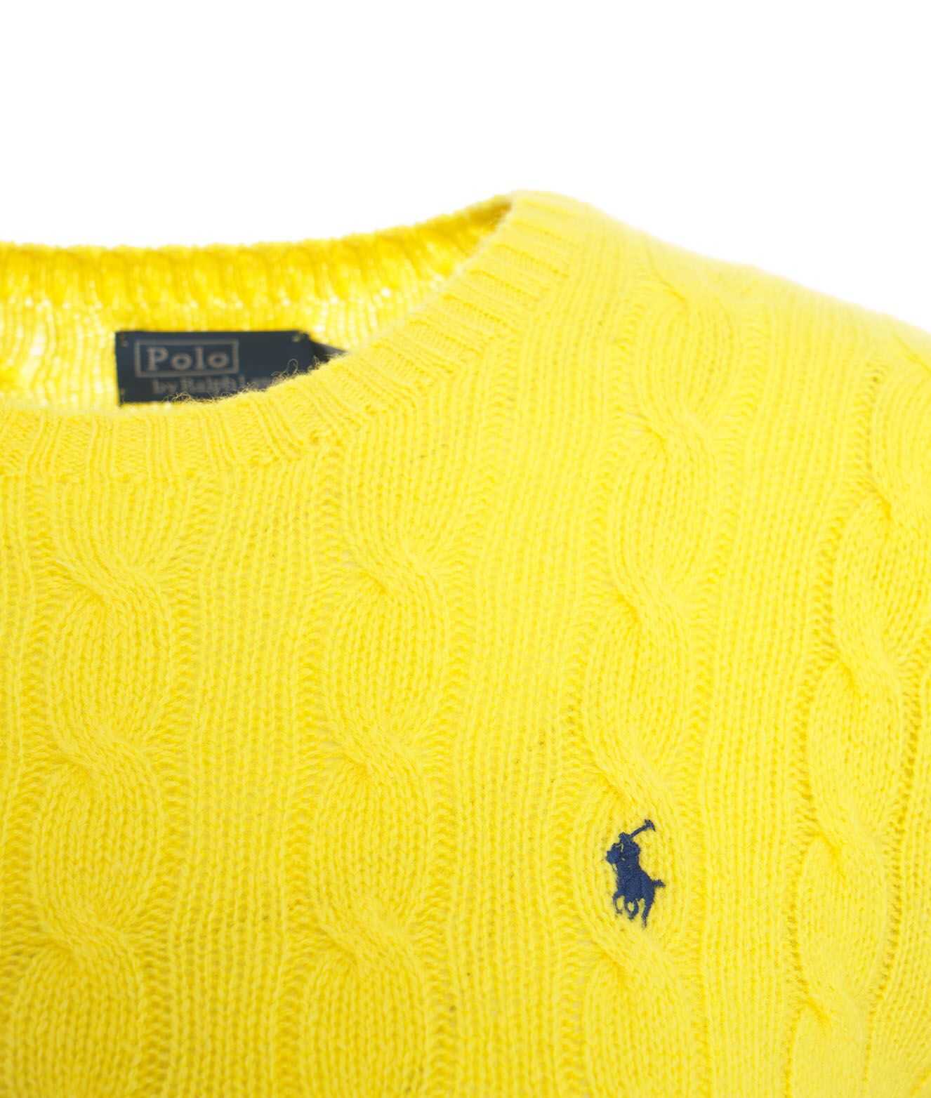 Stay cozy and stylish in this Yellow Cable knit sweater from POLO RALPH LAUREN. Made with 20% WS, 80% WO material, this sweater features a classic cable knit design. Perfect for cool weather, this sweater is a must-have for your wardrobe. Hand wash recommended. Get yours today!