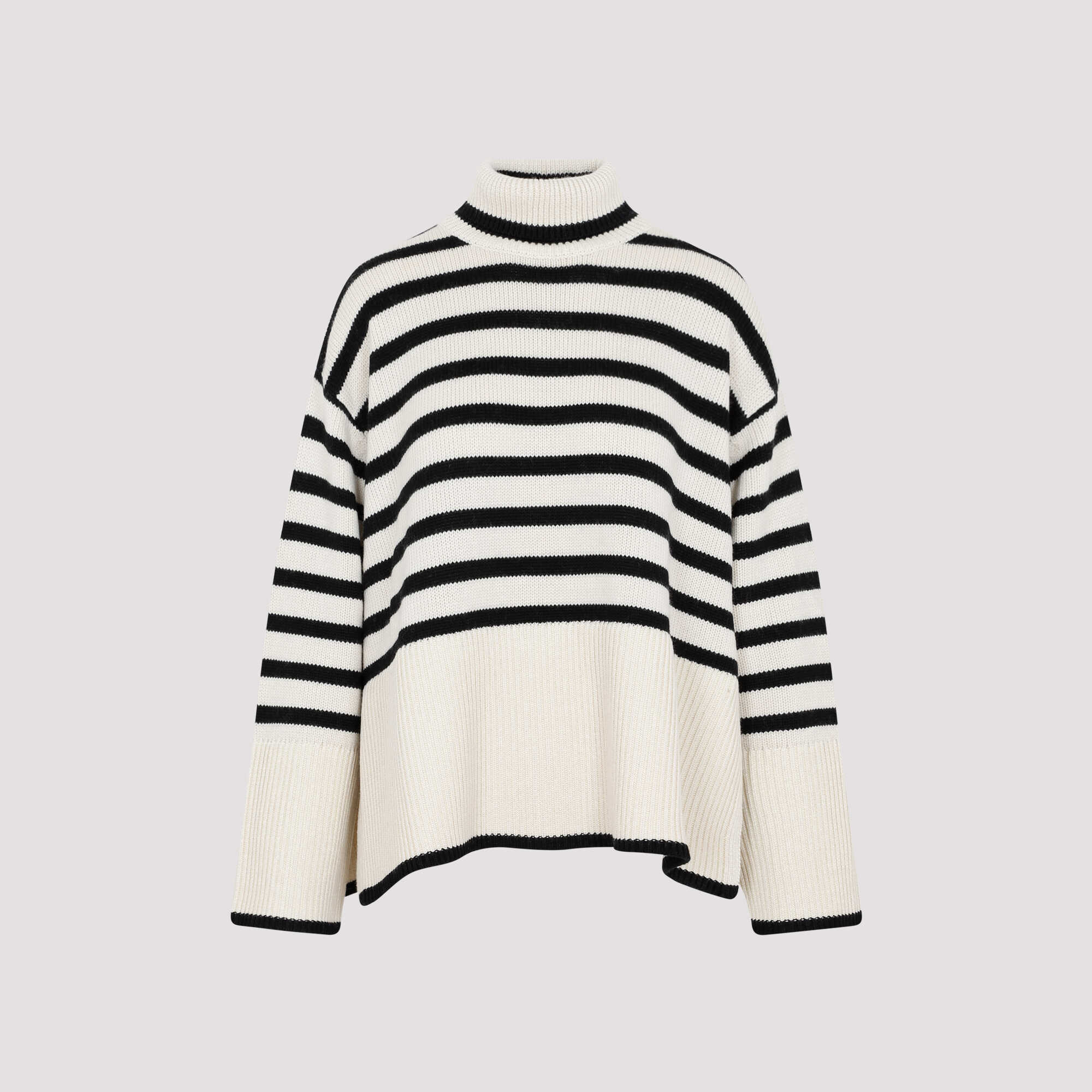 Elevate your wardrobe with this chic Nude & Neutrals sweater from TOTEME. Made from 100% premium wool, this striped jumper features a stylish roll neckline, long sleeves, and a relaxed fit. Perfect for effortless style and comfort. Shop now!