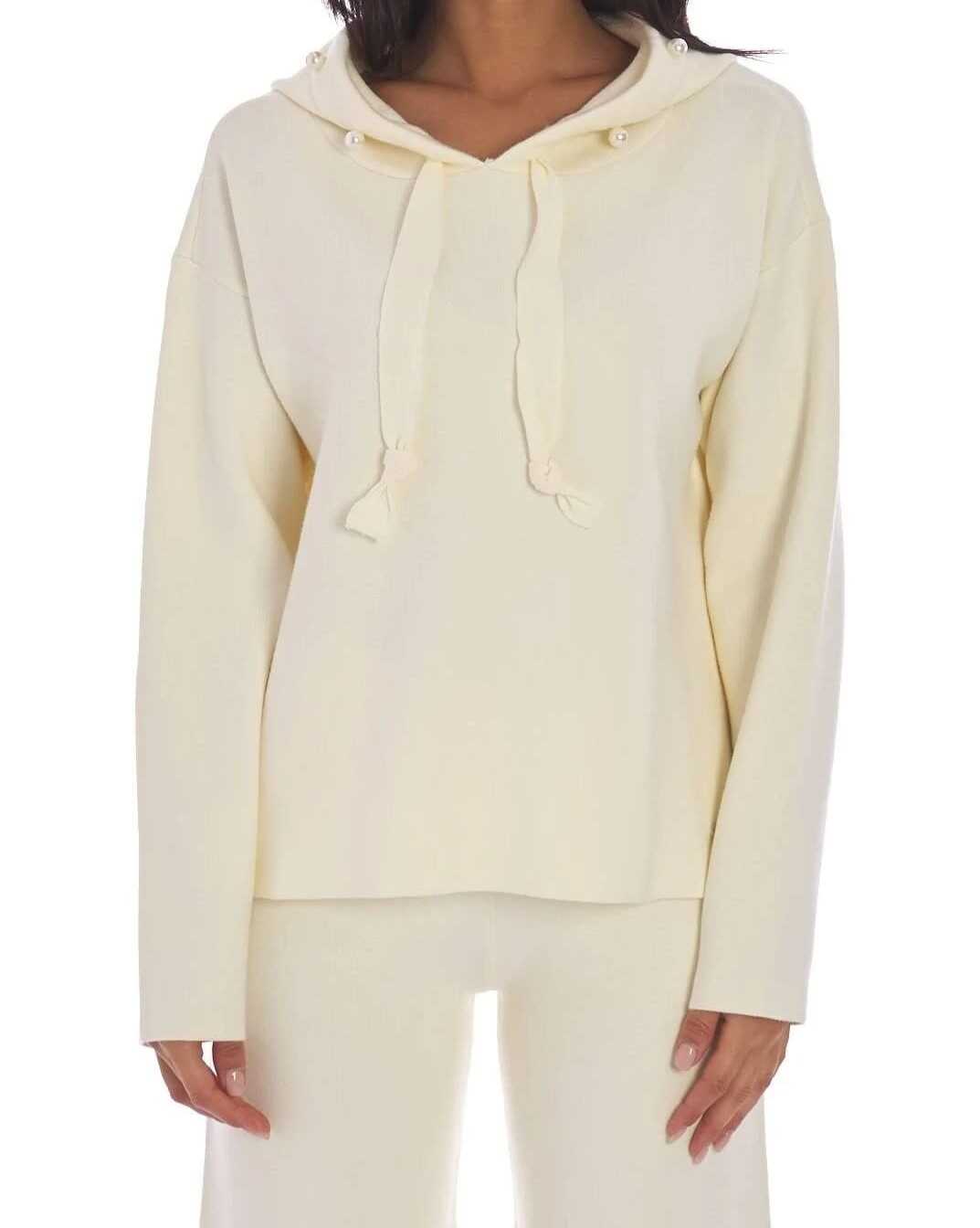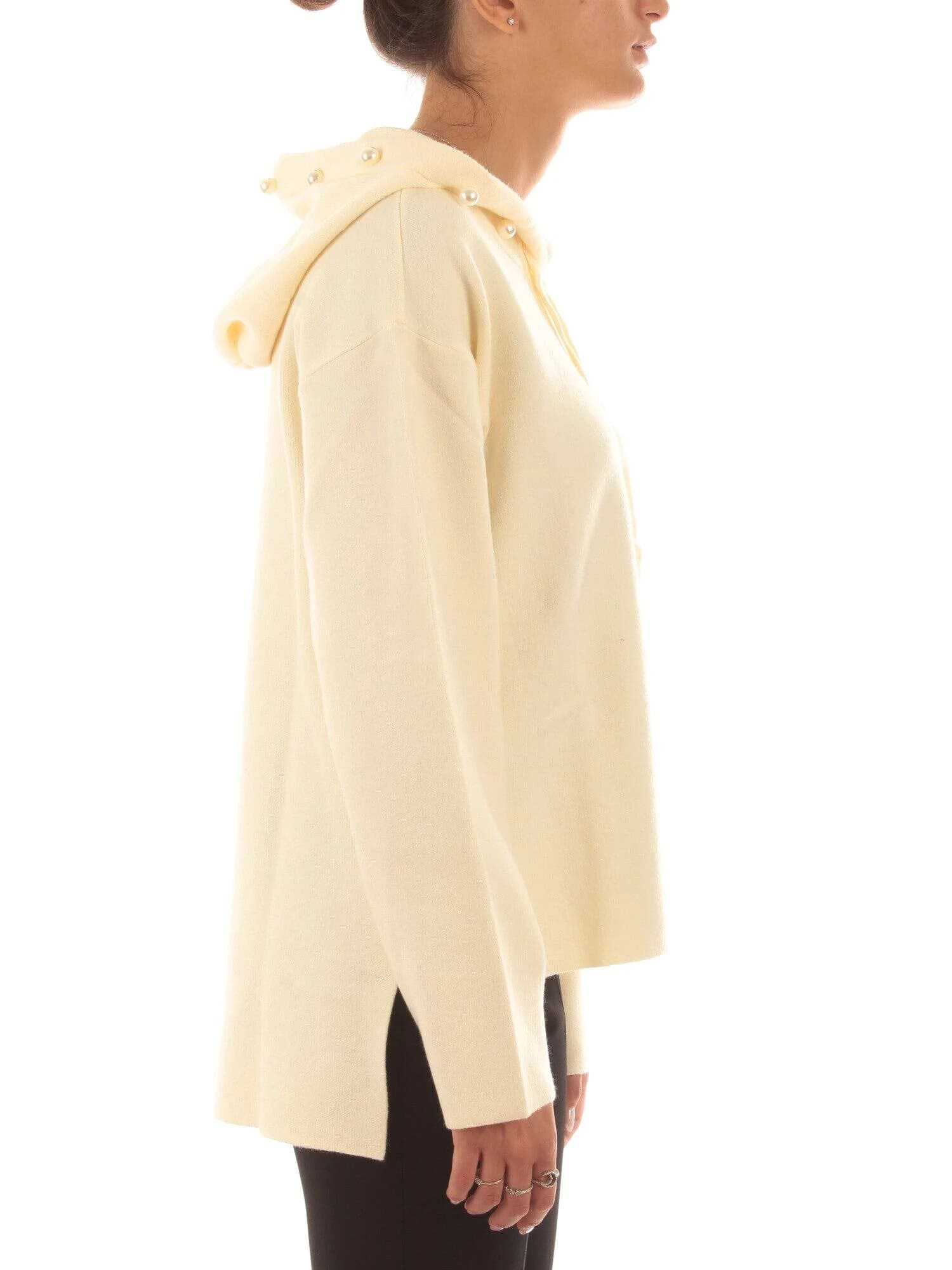 Felpa TWINSET ACTITUDE realizzata in morbida viscosa da donna con cappuccio bordato di perle a manica lunga, taglio asimmetrico.