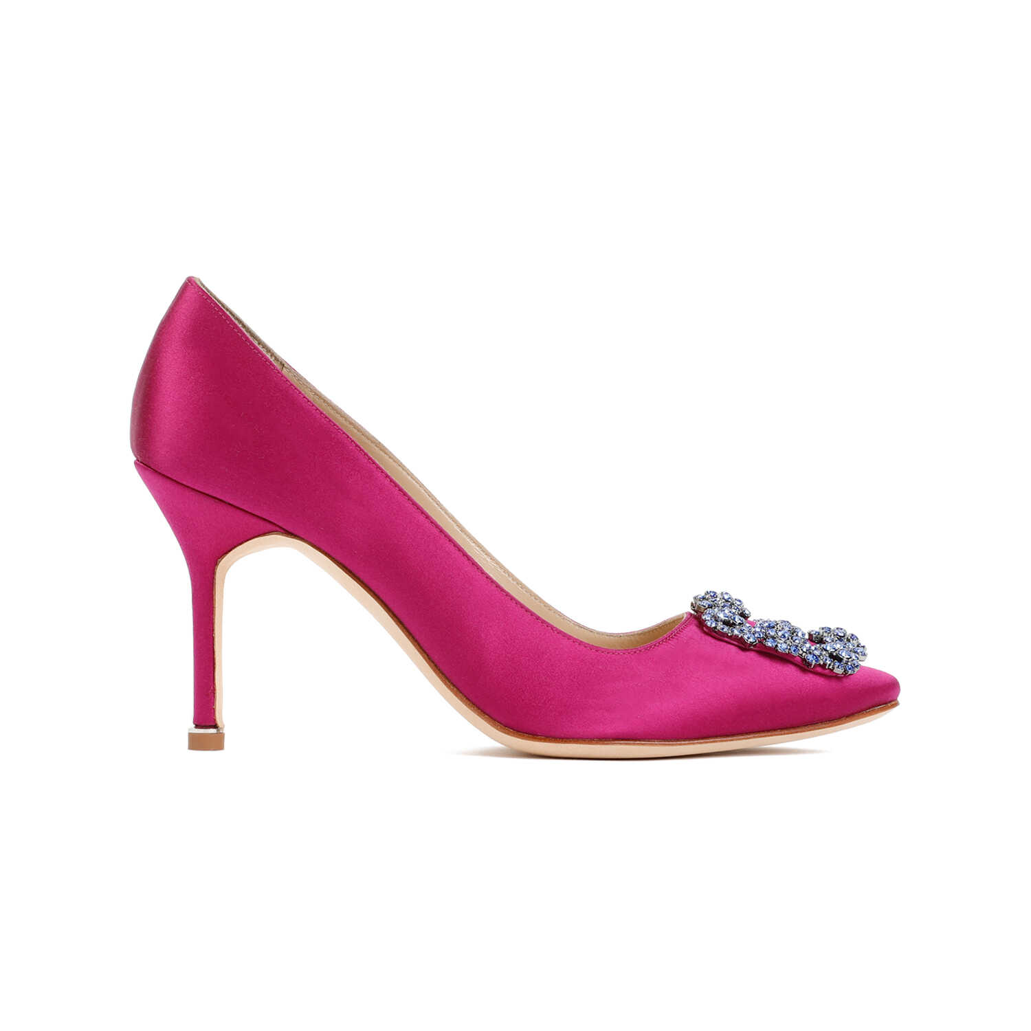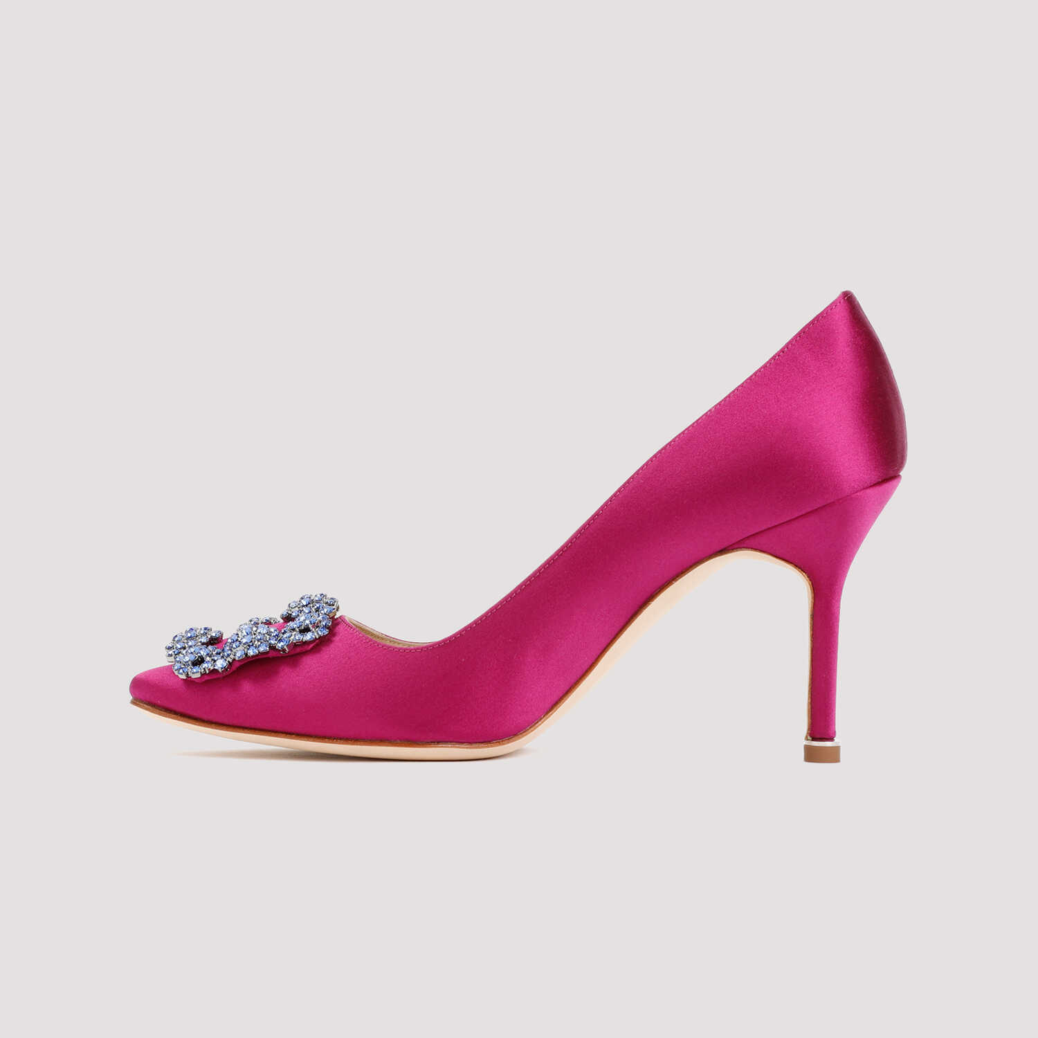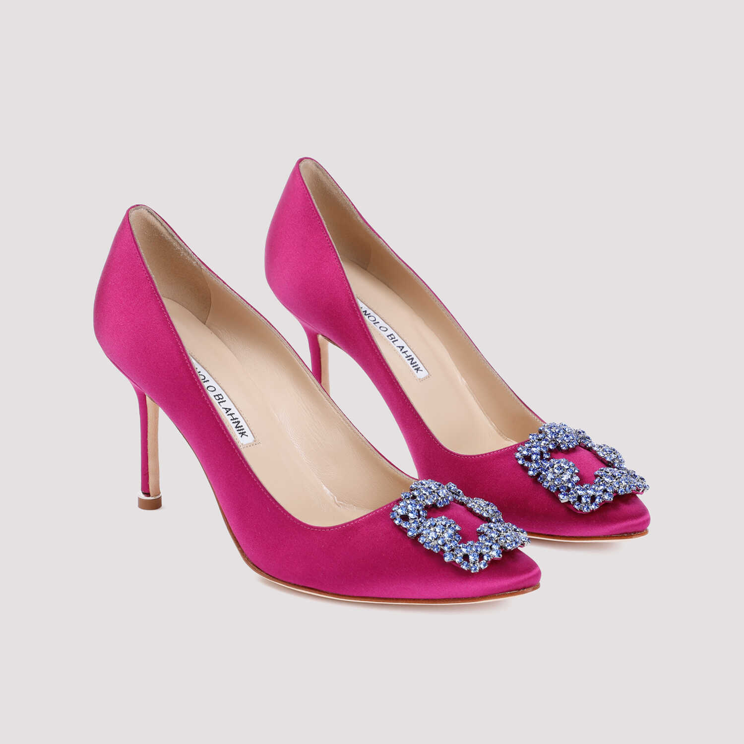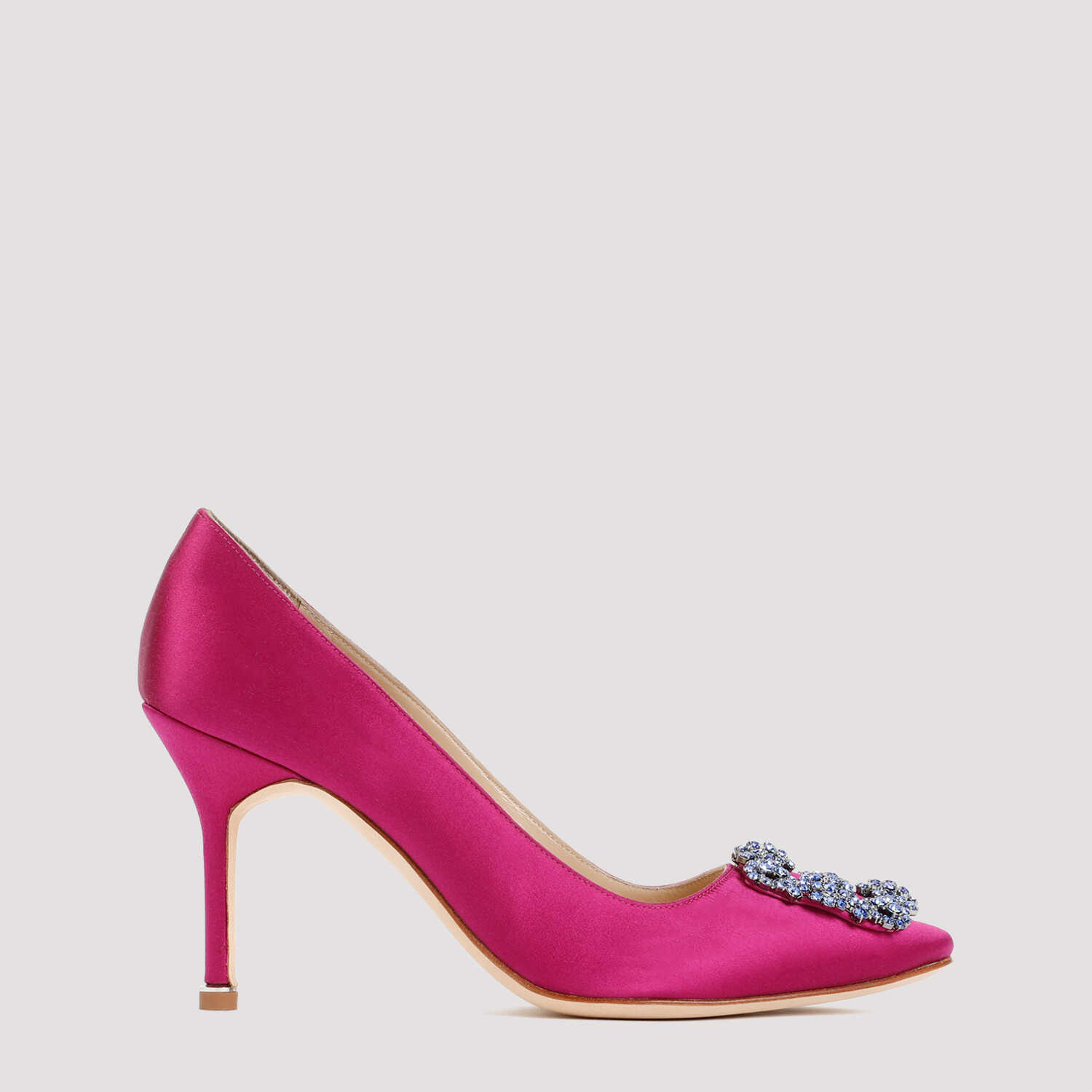 Step into luxury with these stunning MANOLO BLAHNIK 3232688 pumps. Made of 100% satin and leather, they feature an eye-catching pink & purple color. The 9cm heel adds a touch of elegance, while the crystal buckle adds a glamorous finish. Perfect for any special occasion!