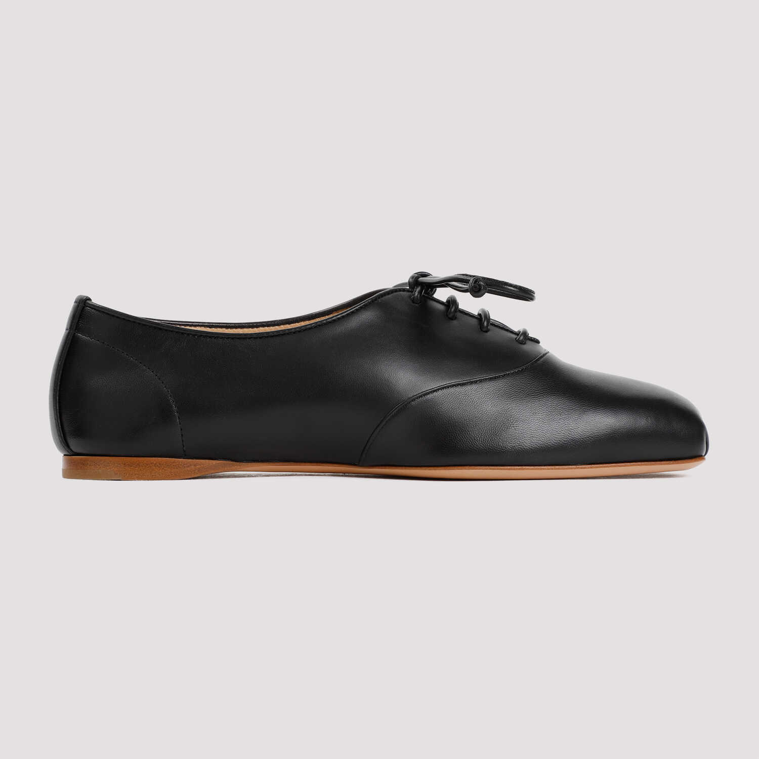 Step out in style with these elegant GABRIELA HEARST black nappa lamb leather flats. Featuring a squared toe, lace-up fastening, and tonal stitching, these shoes offer both comfort and sophistication. The brown sole adds a touch of contrast, making them a versatile choice for any occasion. Elevate your wardrobe with the luxurious feel of 100% NAPPA LAMB LEATHER from the renowned brand, GABRIELA HEARST.