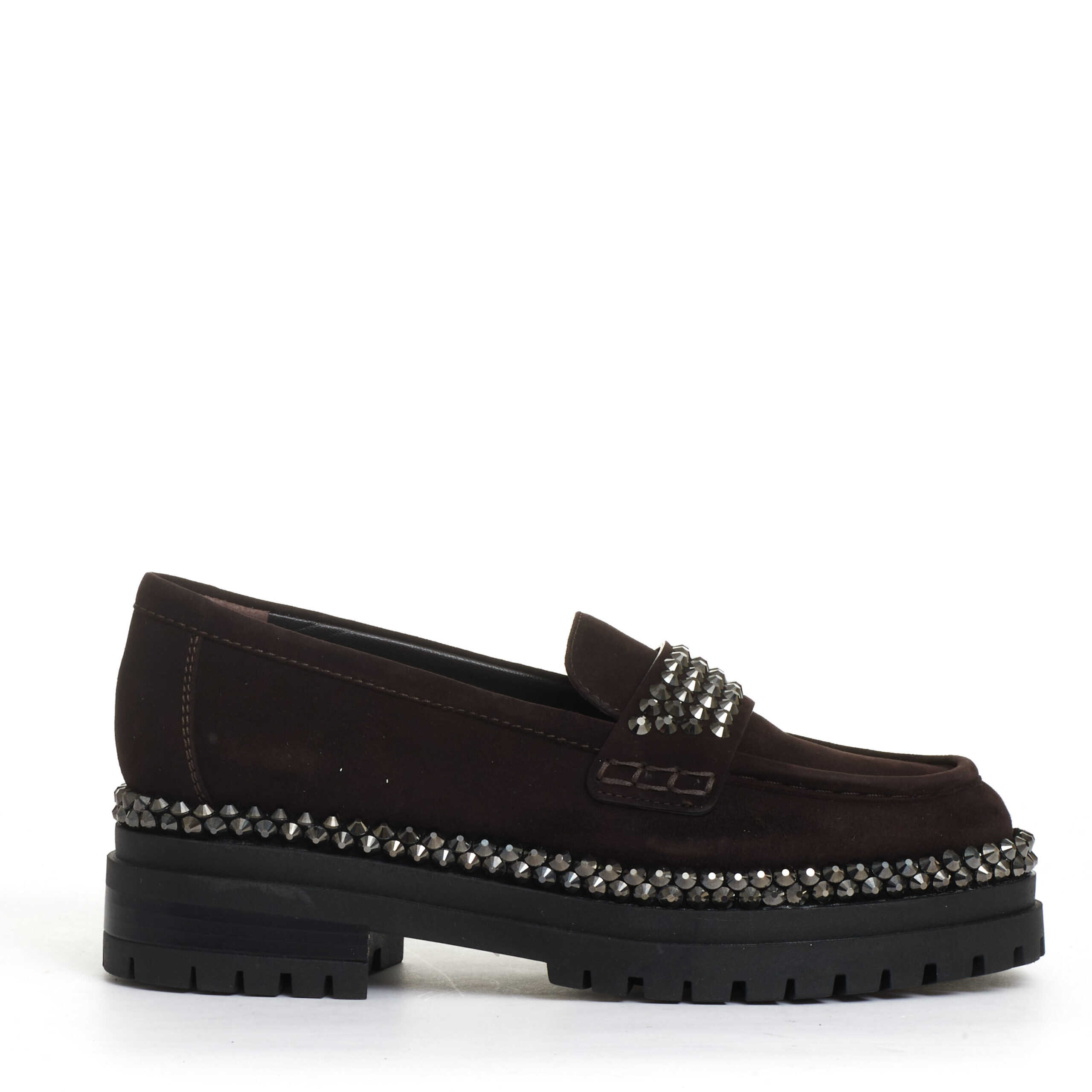 mocassinocamosico ebanofibbia in strass color antracitefondo in gomma light