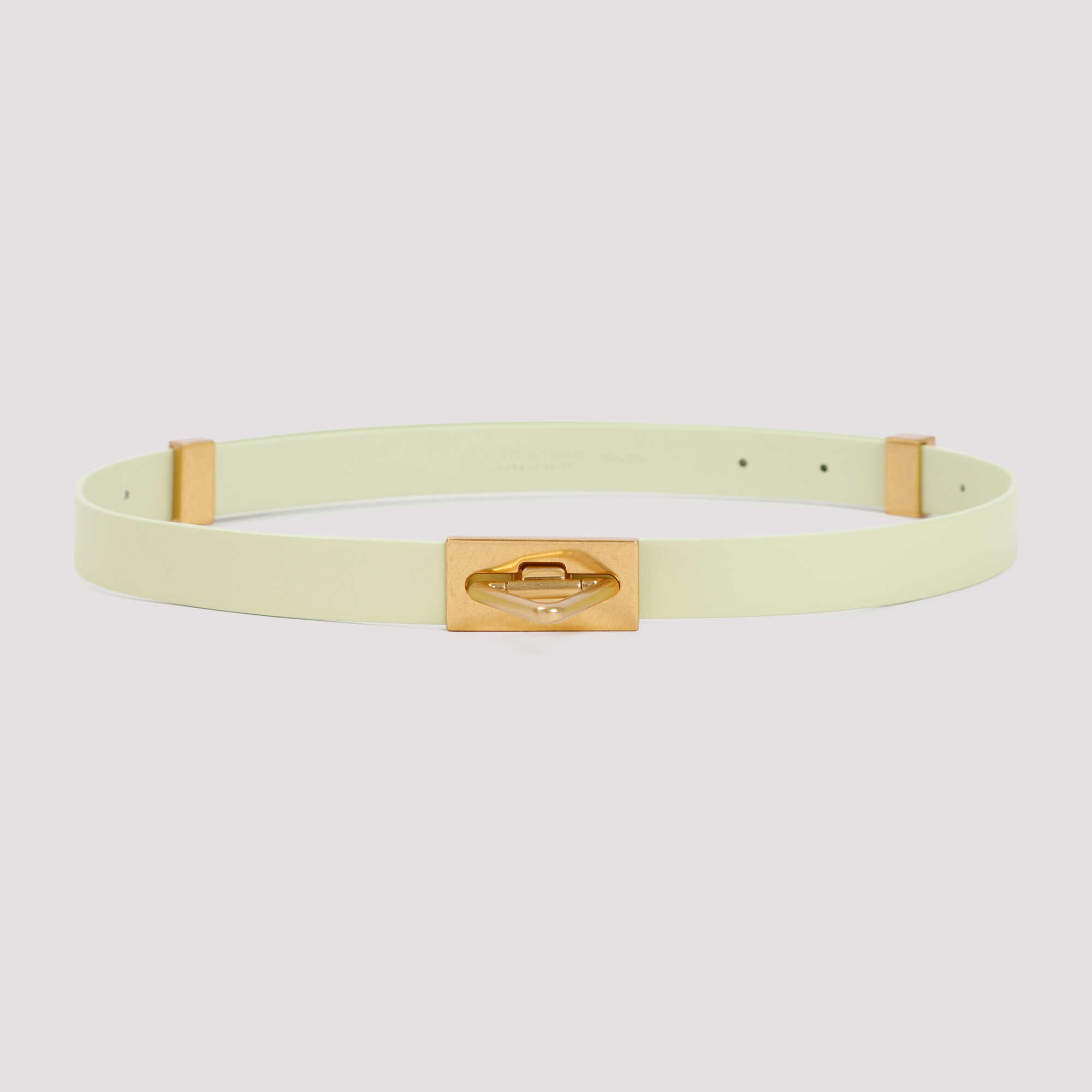 Elevate your style with this stunning Bottega Veneta leather belt. Crafted from lemon washed leather, it features golden-tone hardware and a twist lock closure with an embossed logo. The perfect accessory for any outfit. Available in yellow & orange. Height: 2cm. 100% Leather.