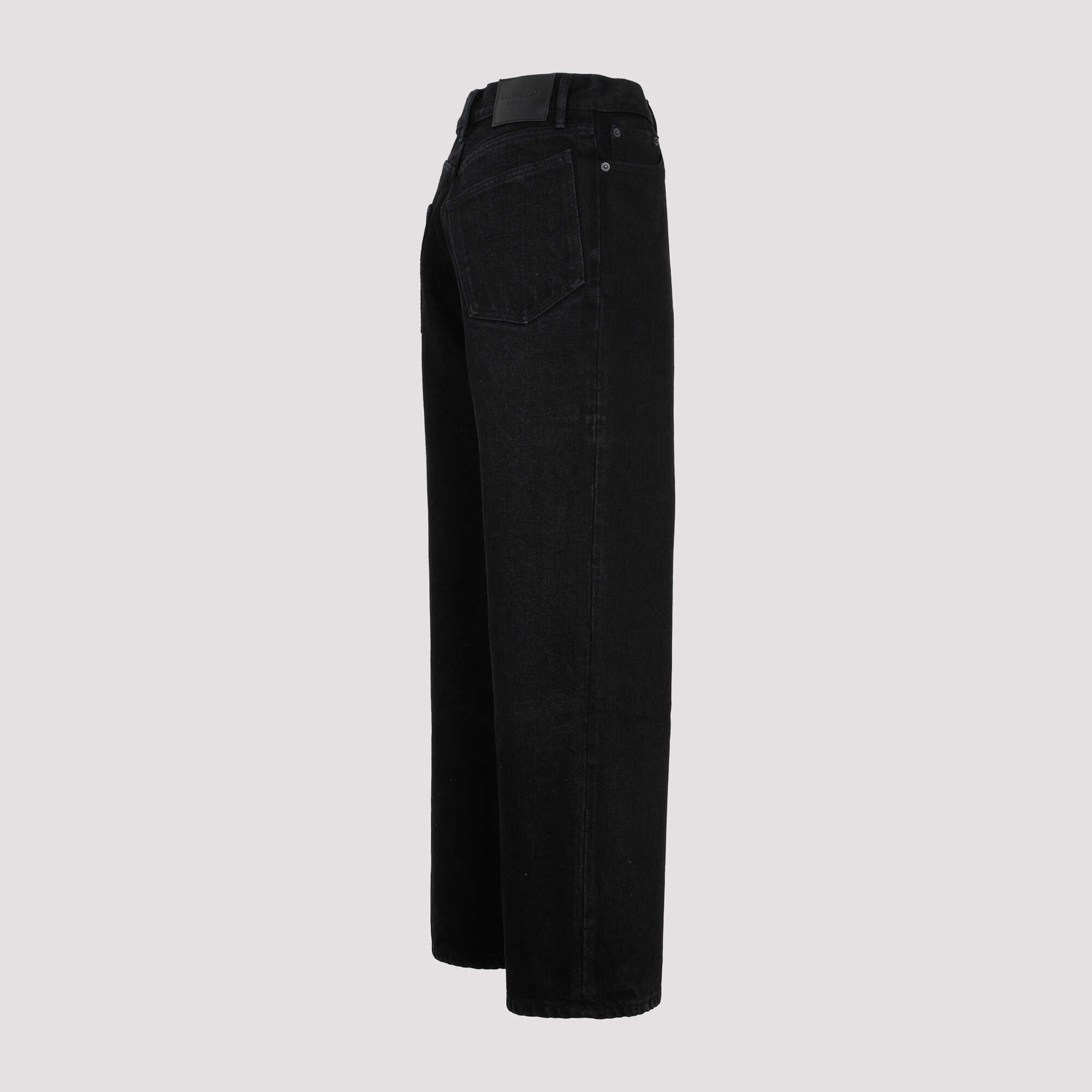 Balenciaga Black Cotton Ankle Cut Jeans. Crafted in pure pitch black cotton denim. Front concealed button fastening with visible top button, belt loops, five-pocket construction, ankle length, Balenciaga logo patch on the back, straight hem.
