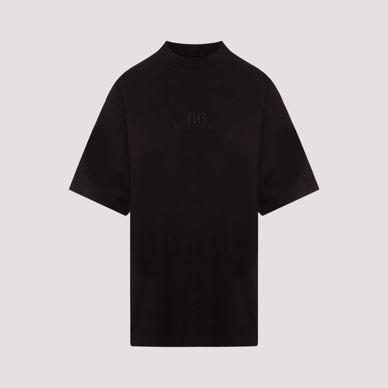 Elevate your casual style with this chic Balenciaga black cotton t-shirt. Featuring a medium fit, ribbed stand-up collar, and a tonal embroidered logo, this shirt is perfect for any occasion. The dropped shoulder and short sleeves add a modern touch, while the straight hem ensures a flattering fit. Make a statement with Balenciaga.