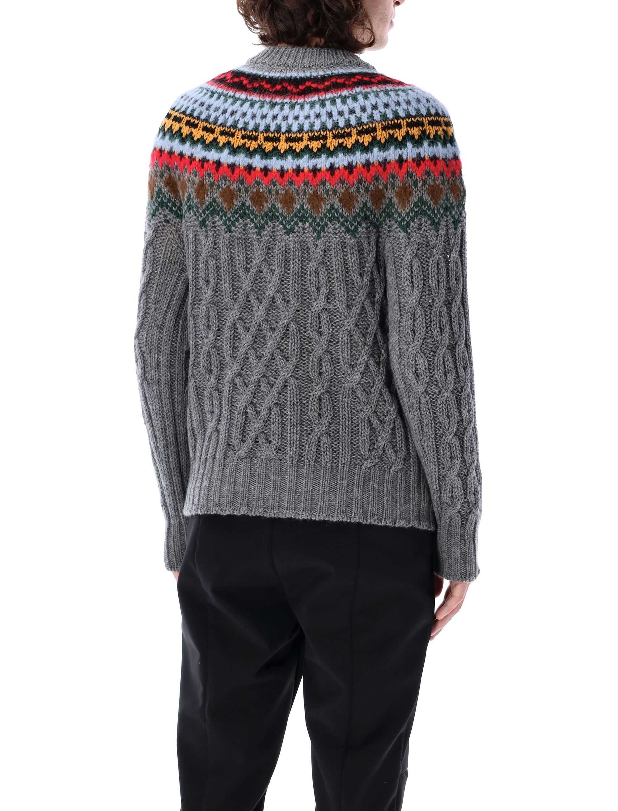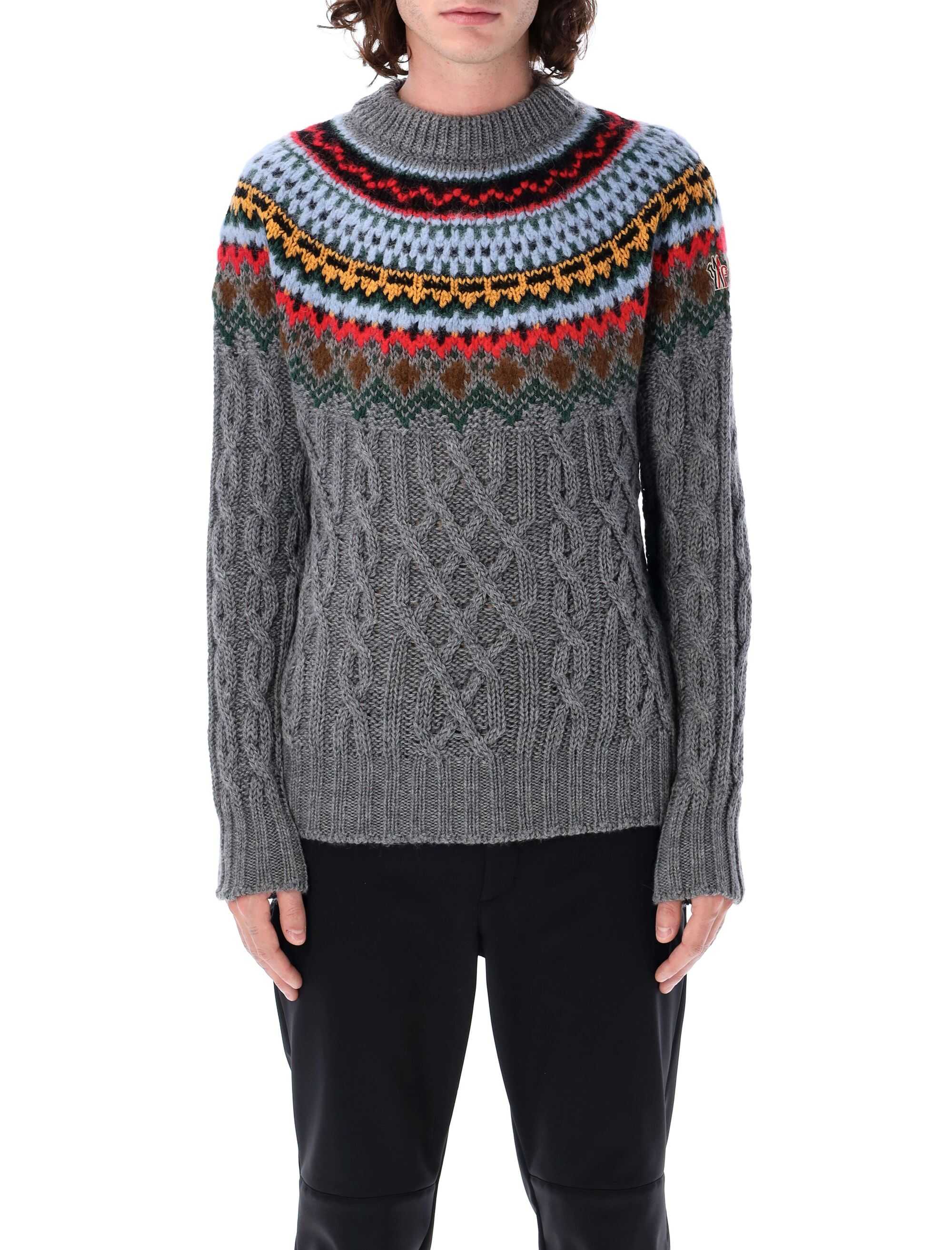 Elevate your wardrobe with this luxurious wool and alpaca sweater from Moncler Grenoble. Its exquisite diamond and cable pattern, cozy crew neck, and stylish embroidered logo make it a must-have for the modern man seeking comfort and sophistication.