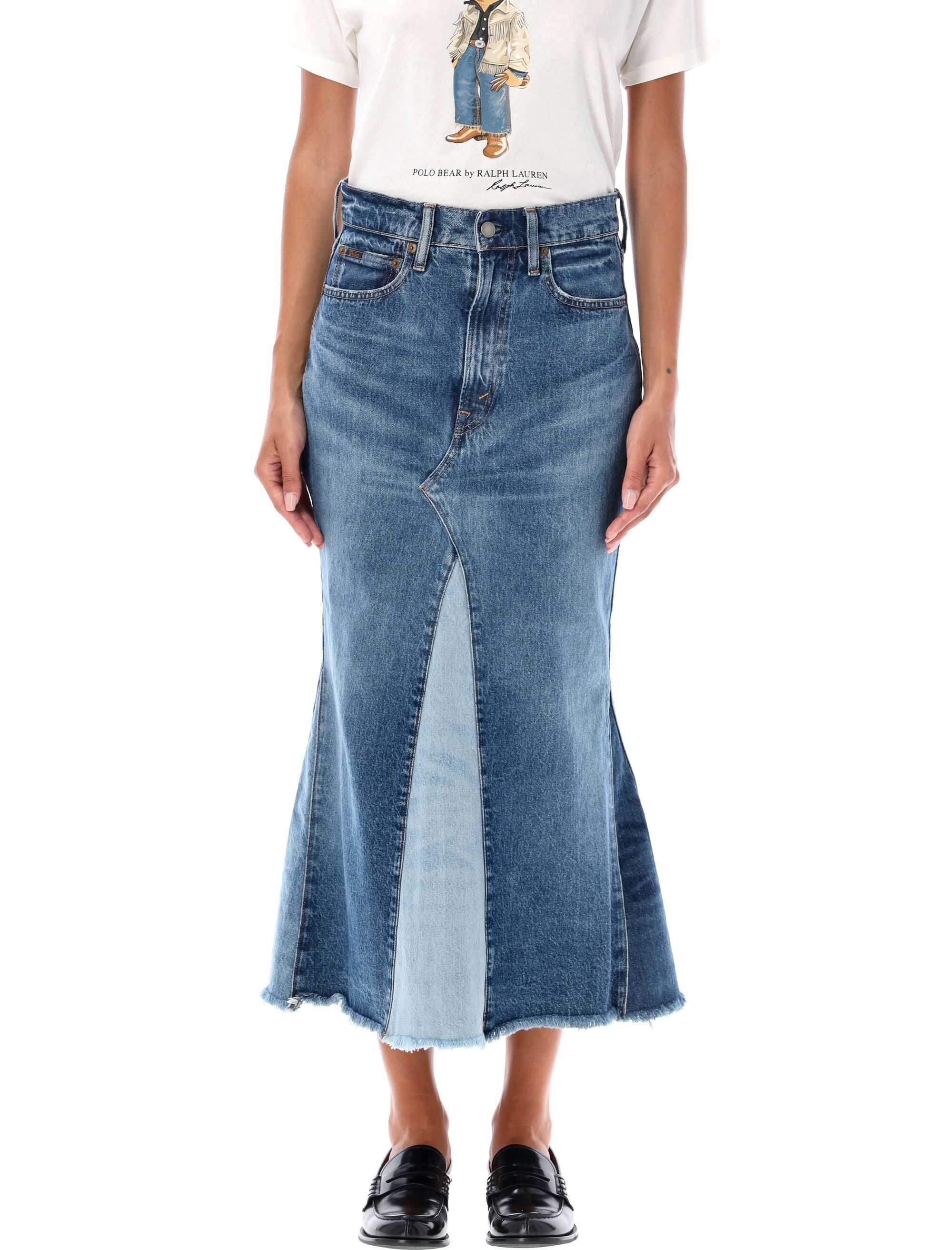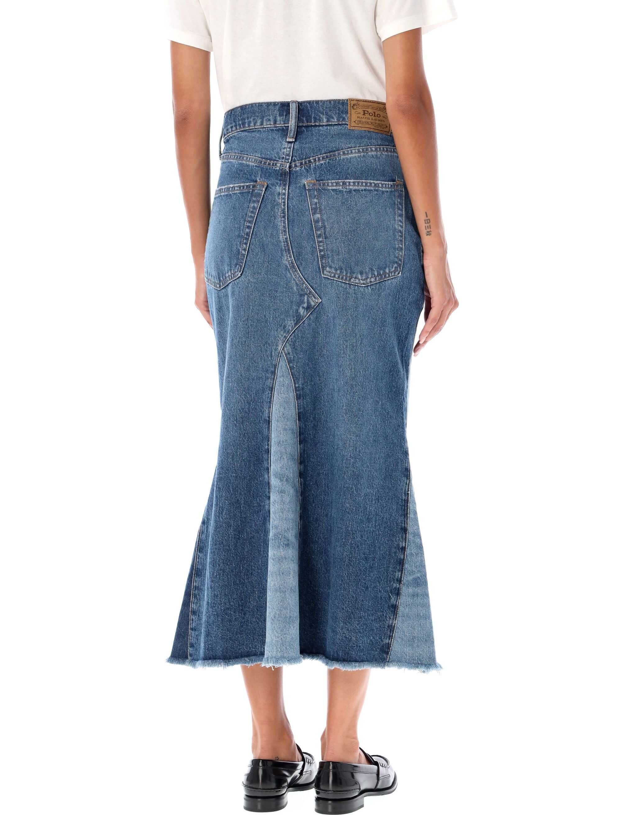 Denim patchwork long skirt