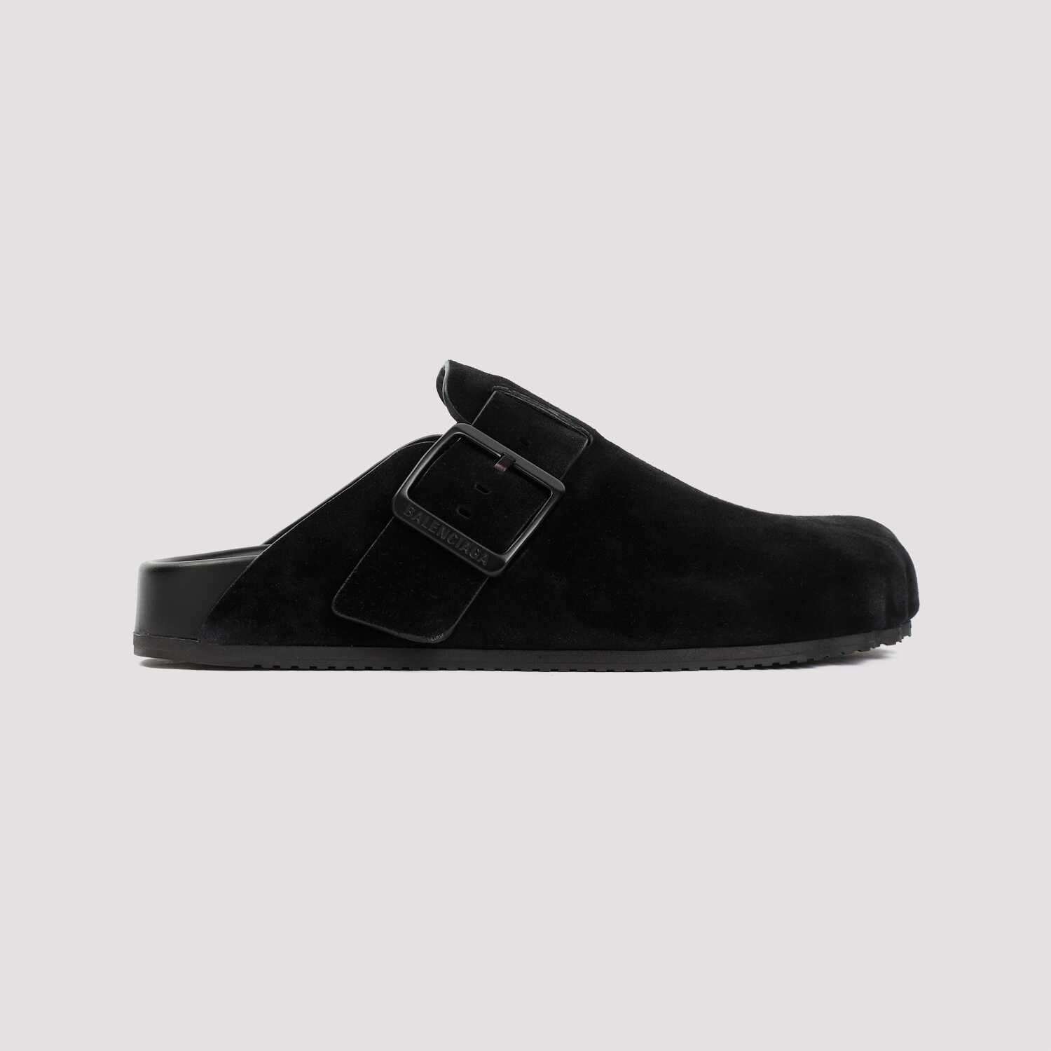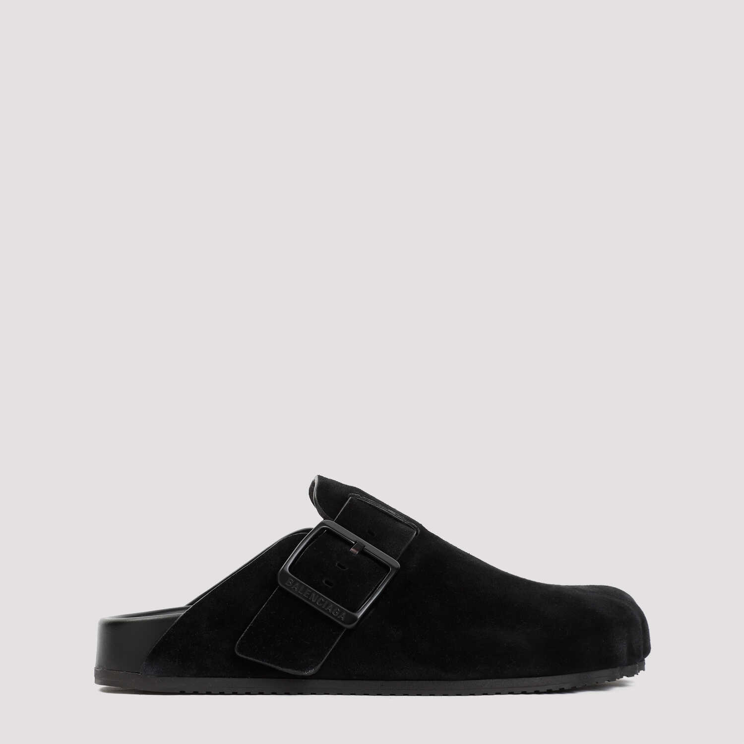 Step out in style with these chic black suede mules from Balenciaga. Featuring a buckle-fastening strap, round toeline, and moulded footbed with logo print, these mules are the perfect combination of comfort and luxury. Made from a blend of straw and suede leather with a rubber sole, these mules are versatile and stylish for any occasion. Elevate your look with Balenciaga's signature touch of sophistication.