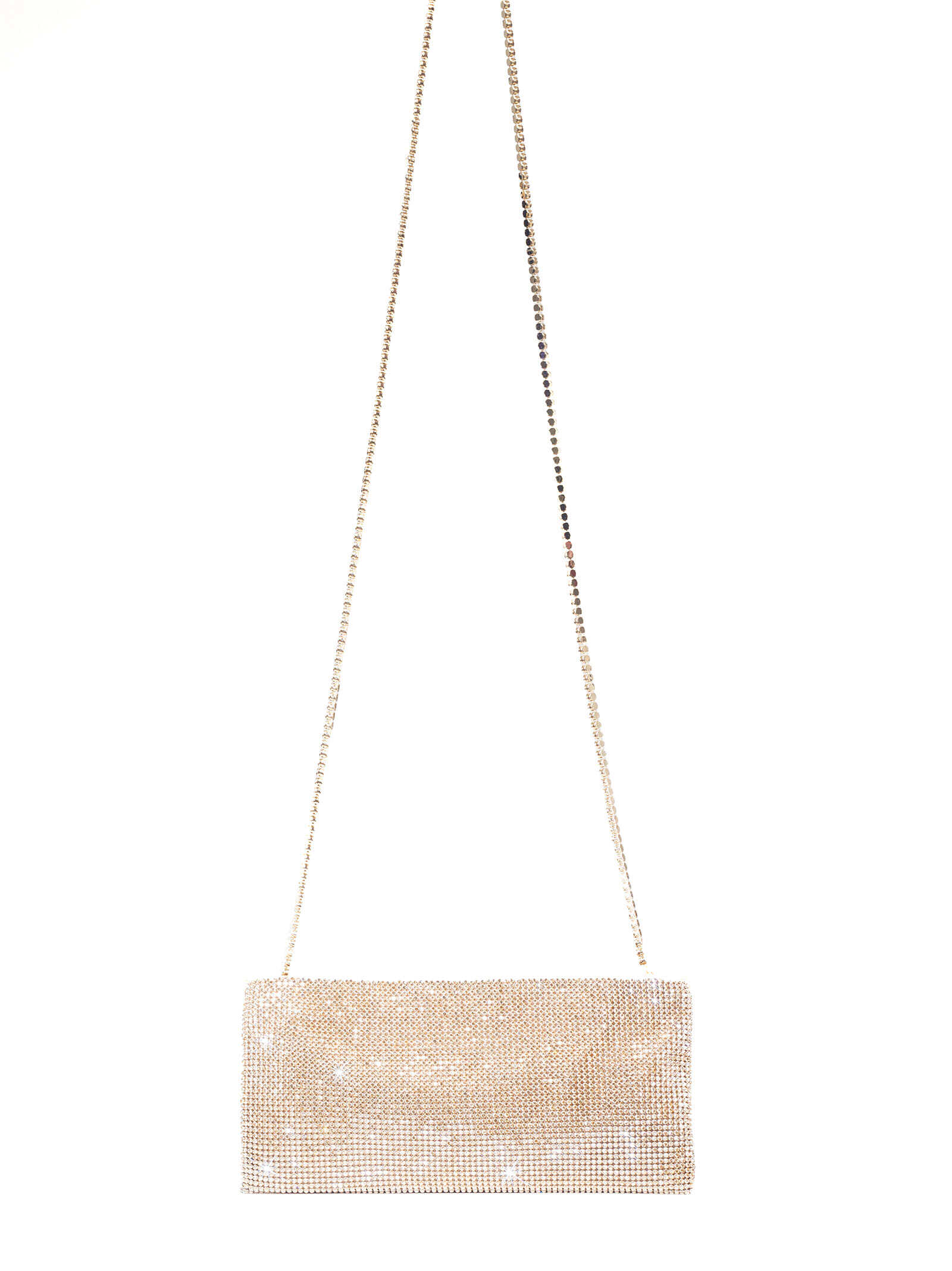 YBF La Petite sand-colored silk satin and crystal mesh shoulder bag with crystal shoulder strap.