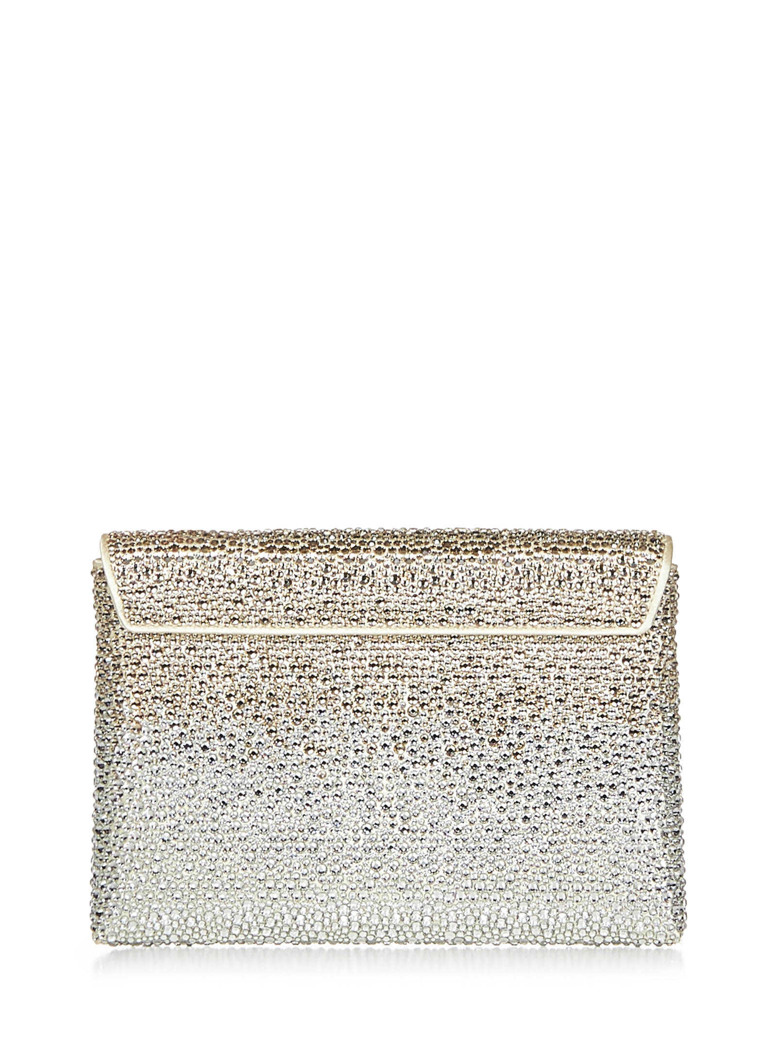 La Medusa crystal-embellished ivory satin envelope clutch with shoulder strap and La Medusa detail.