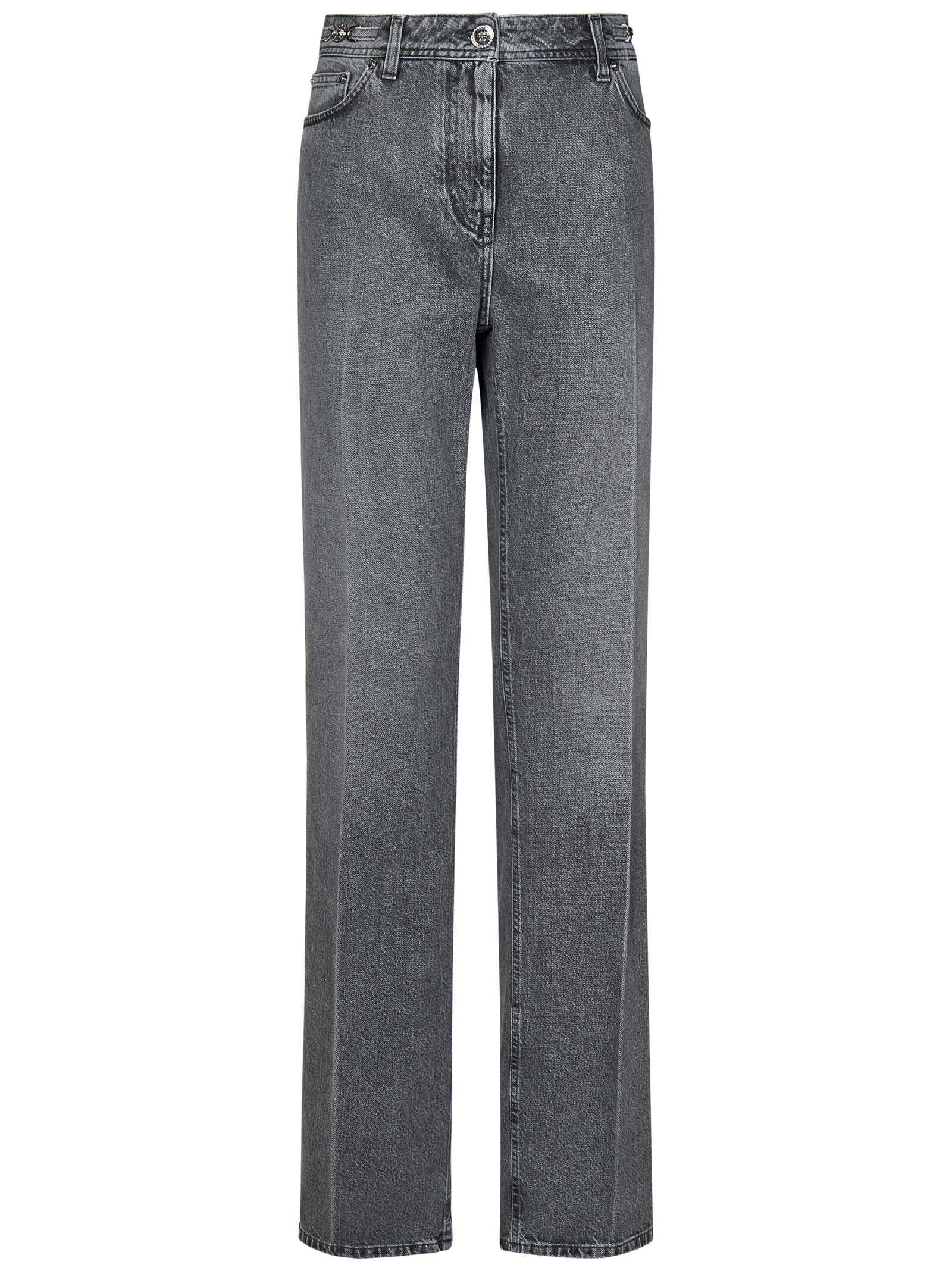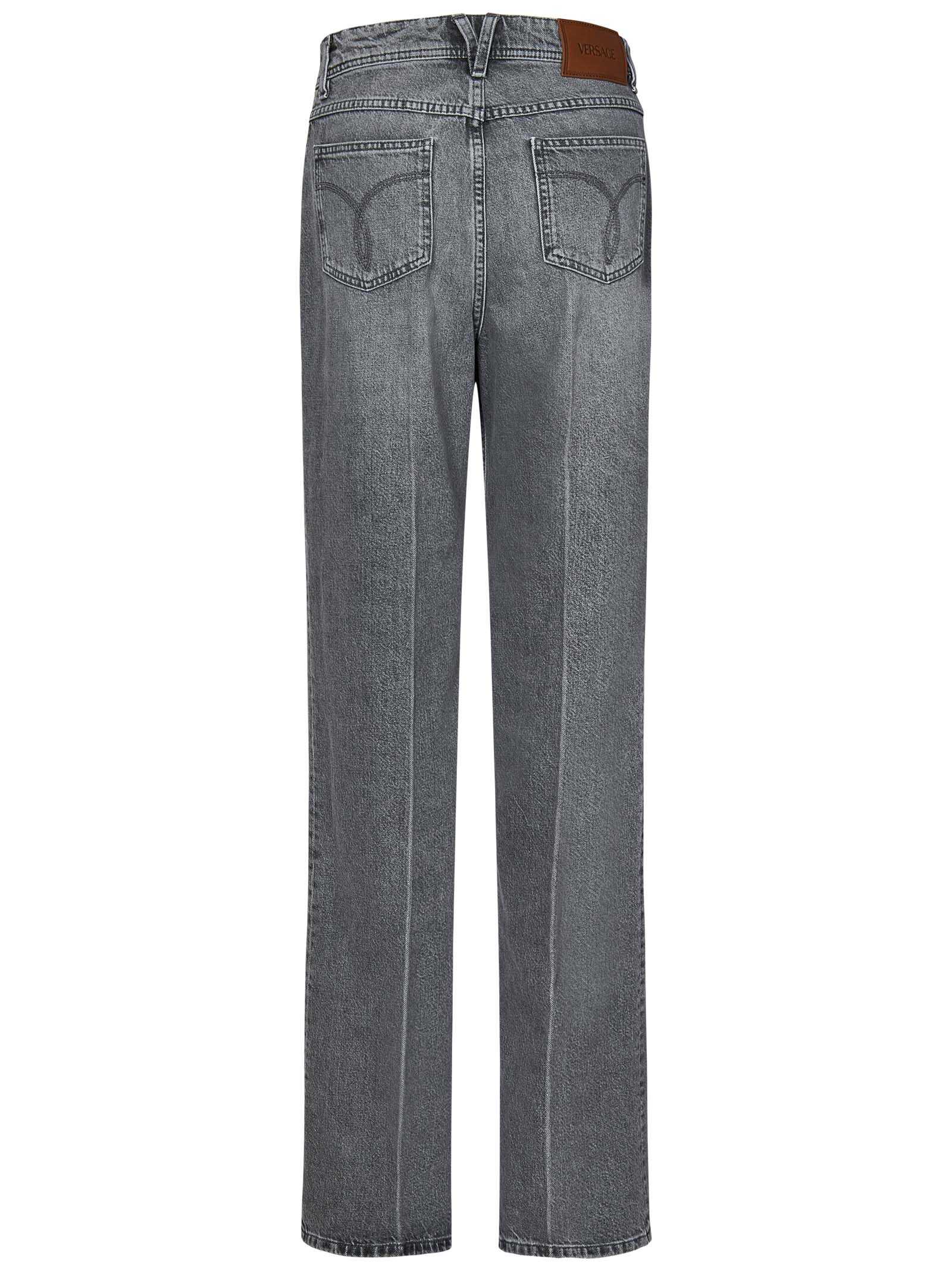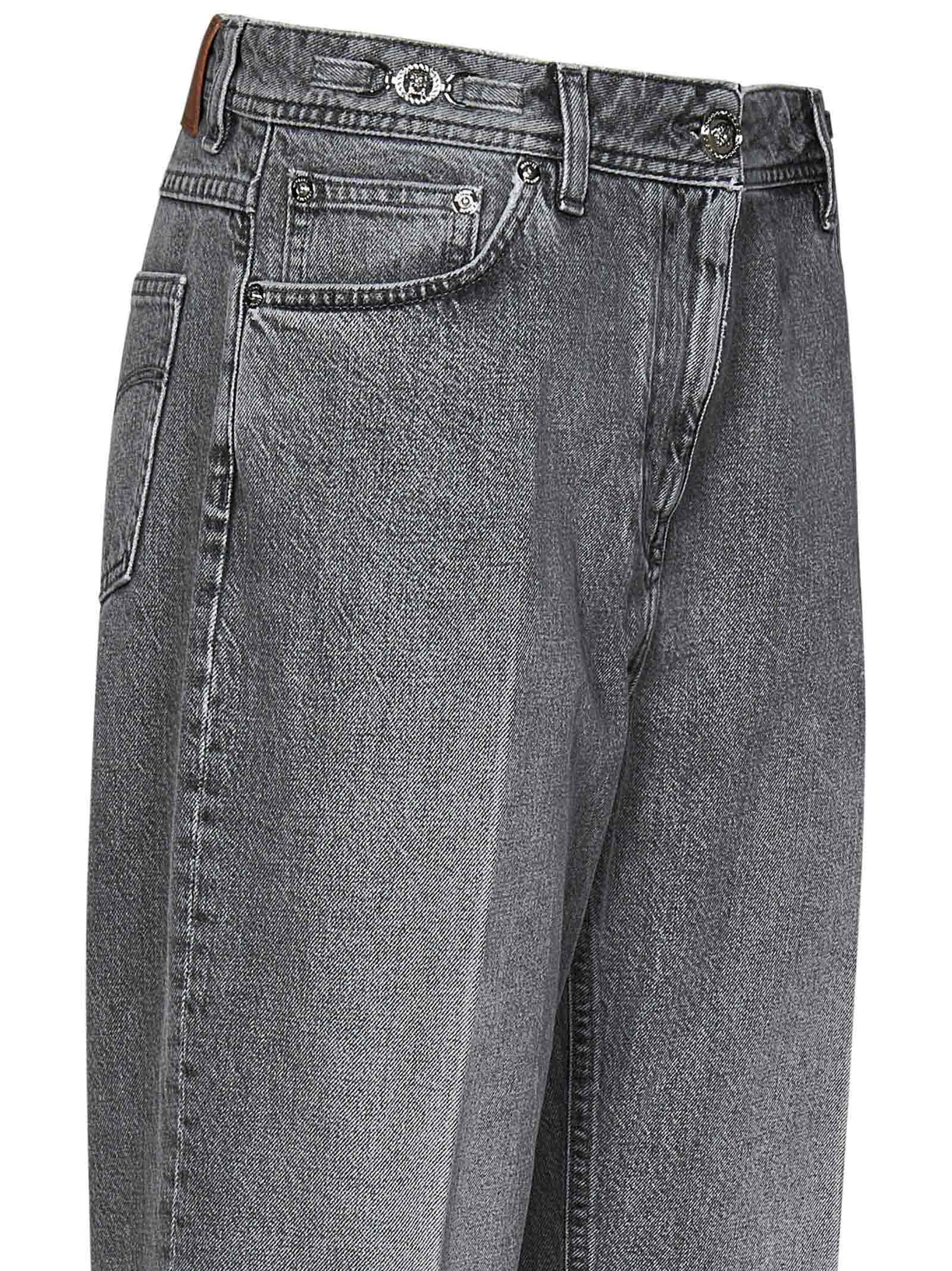 Medusa '95 grey cotton stone-wash denim boyfriend jeans with Medusa '95 details at waist.