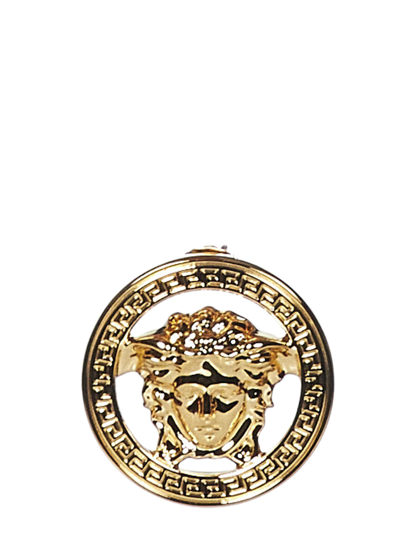 Gold-colored metal earrings with Medusa '95 and Greca motif.