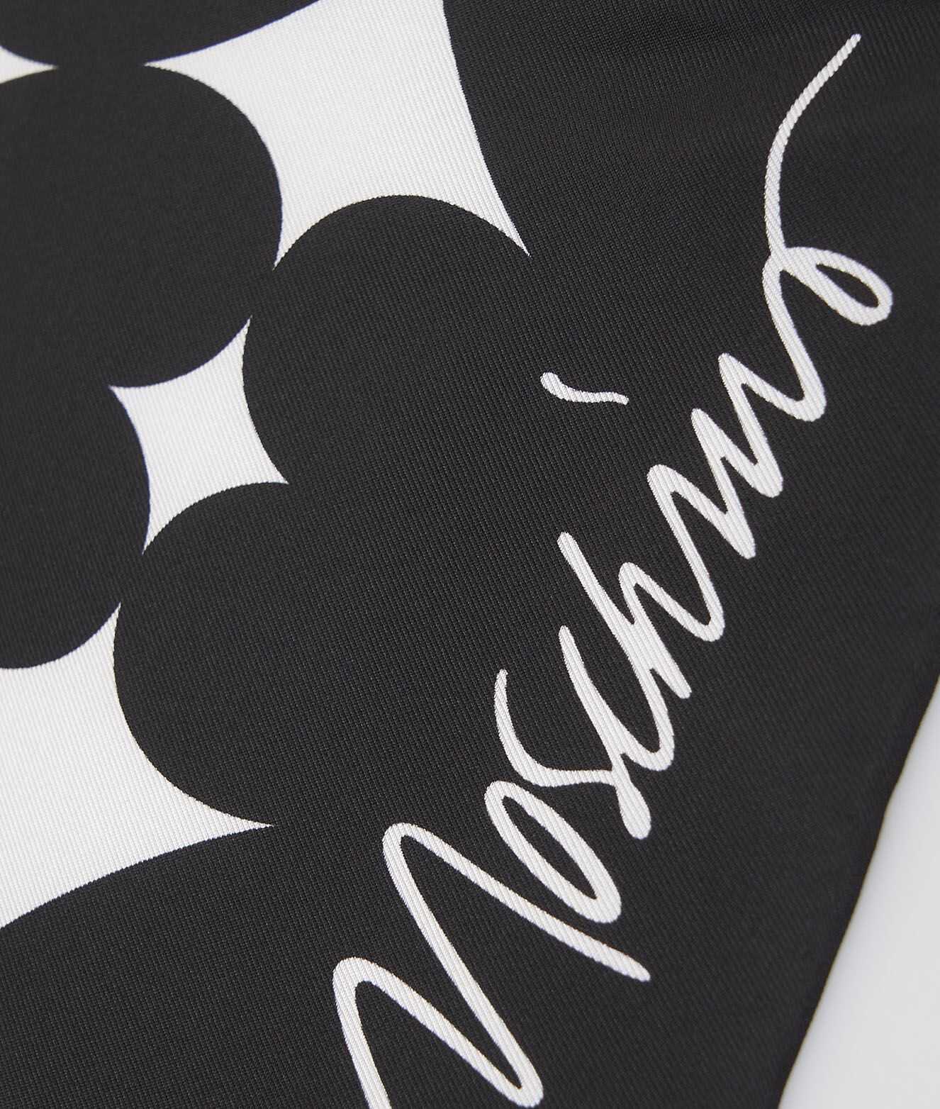 Add a touch of elegance to your outfit with this luxurious black silk scarf from MOSCHINO. Featuring a stylish heart print design, this scarf is perfect for any occasion. Made from 100% Silk, it is easy to care for with dry cleaning. Elevate your look with this must-have accessory. Dimensions: 90 x 90 cm.