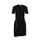 Draped black stretch viscose jersey short-sleeved minidress with snap buttons.