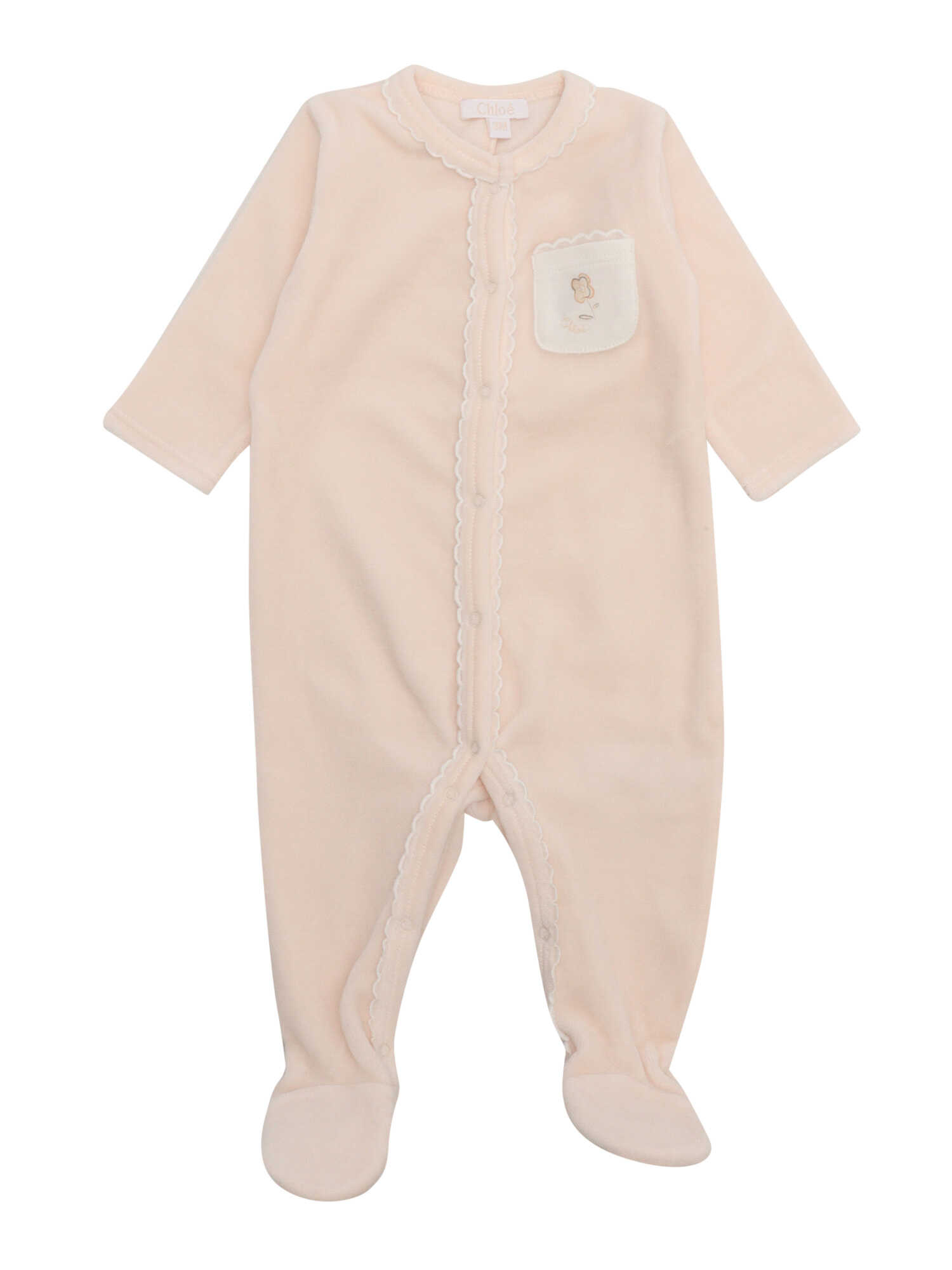 Set of 2 pyjamas. Plain pyjamas in terry velvet, 78% organic cotton 22% recycled polyester, front snap closure and crotch, shells detail, Chlo� and flower embroidery on contrasted pocket. Printed pyjamas in organic cotton interlock, collar in organic cotton percale, back snap closure. Sold in a gift box.
