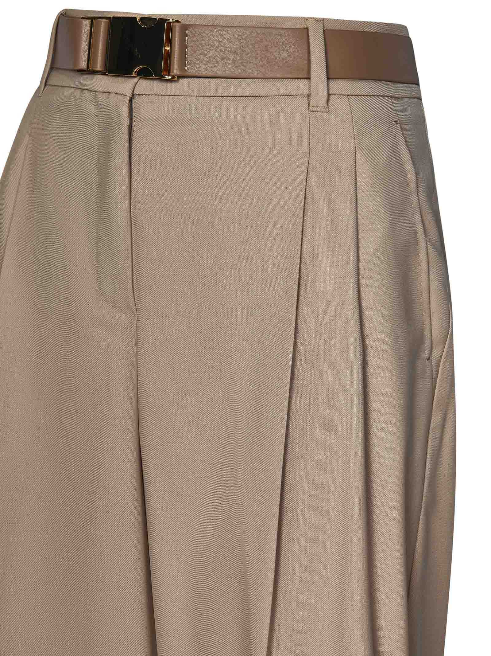 JUANITA trousers in beige wool blend gabardine with double pleat and belt at the waist.