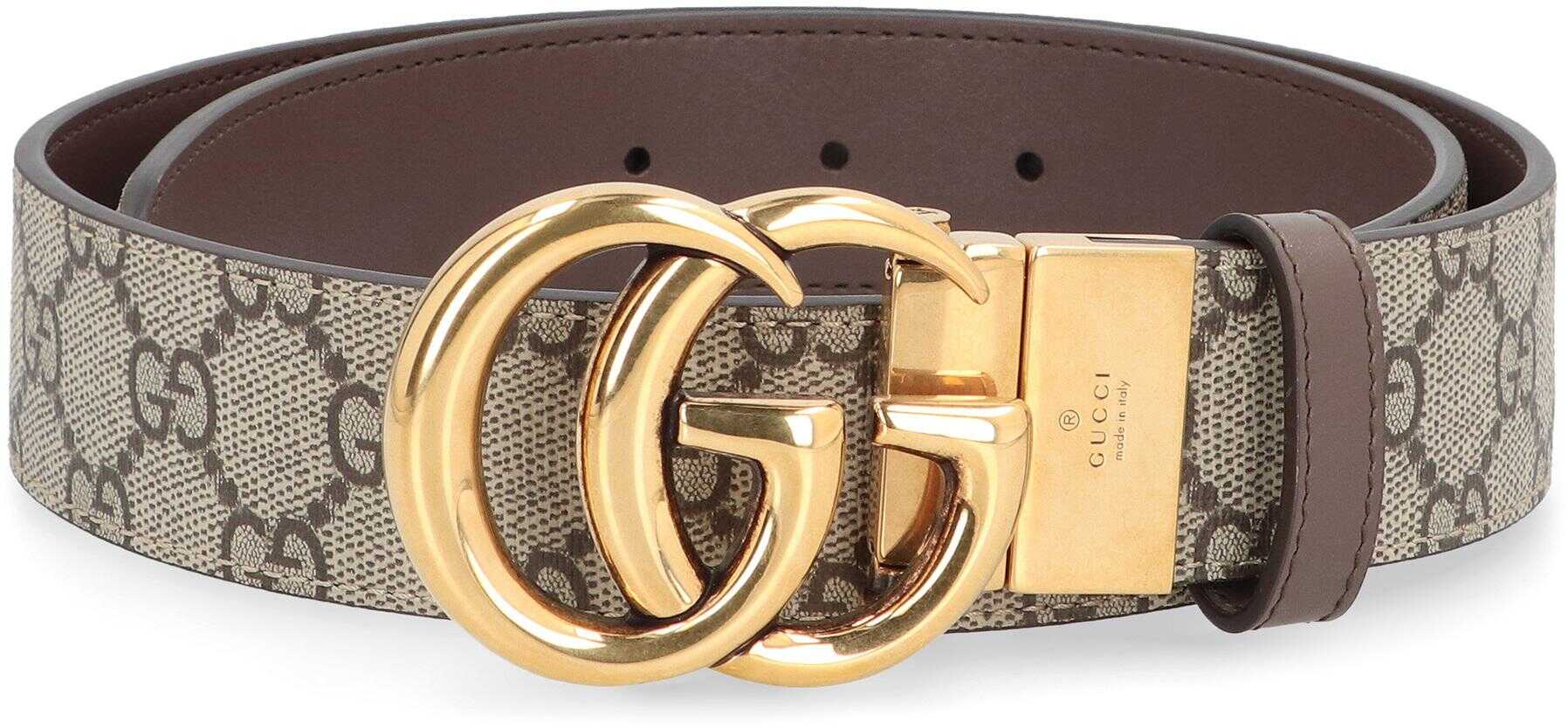 Leather and GG supreme fabric reversible belt