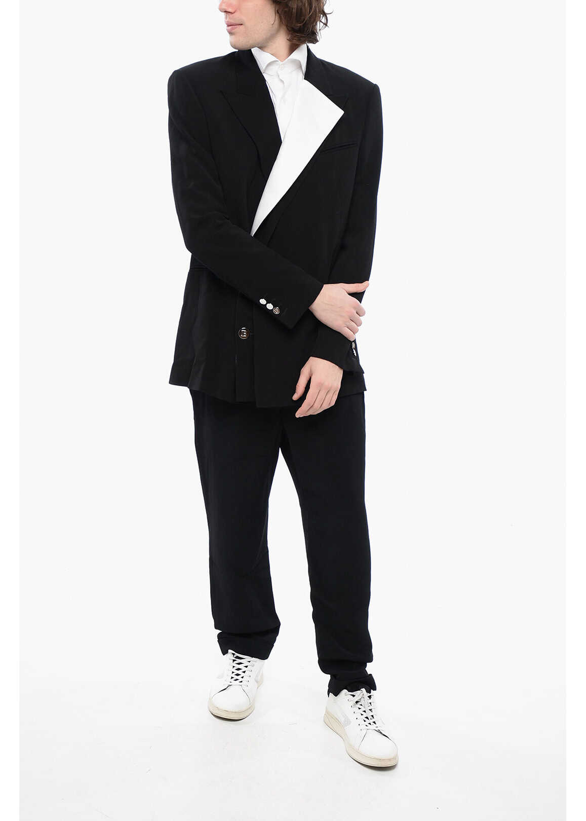 Double-Breasted Viscose Blazer With Contrasting Lapel