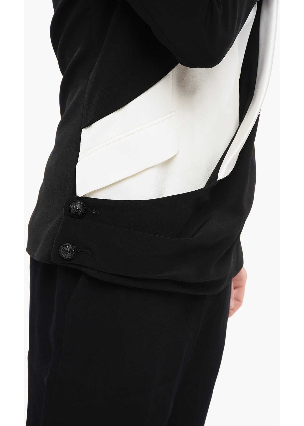 Single-breasted jacket Rear slit Lined Sleeves with buttons 2 pockets Long sleeves Buttons Black & White Flap pocket Spring-Summer Materials: 52%VI 48%AC Product code: P621412 Model is wearing size 48 Model measurements Height: 184 cm Chest: 95 cm Waist: 76 cm Hips: 87 cm
