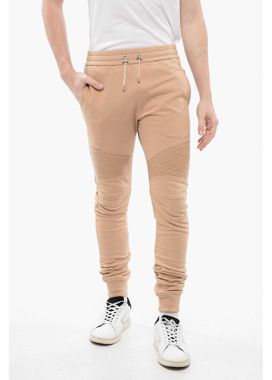 Brushed Cotton Biker Sweatpants With Cuffs