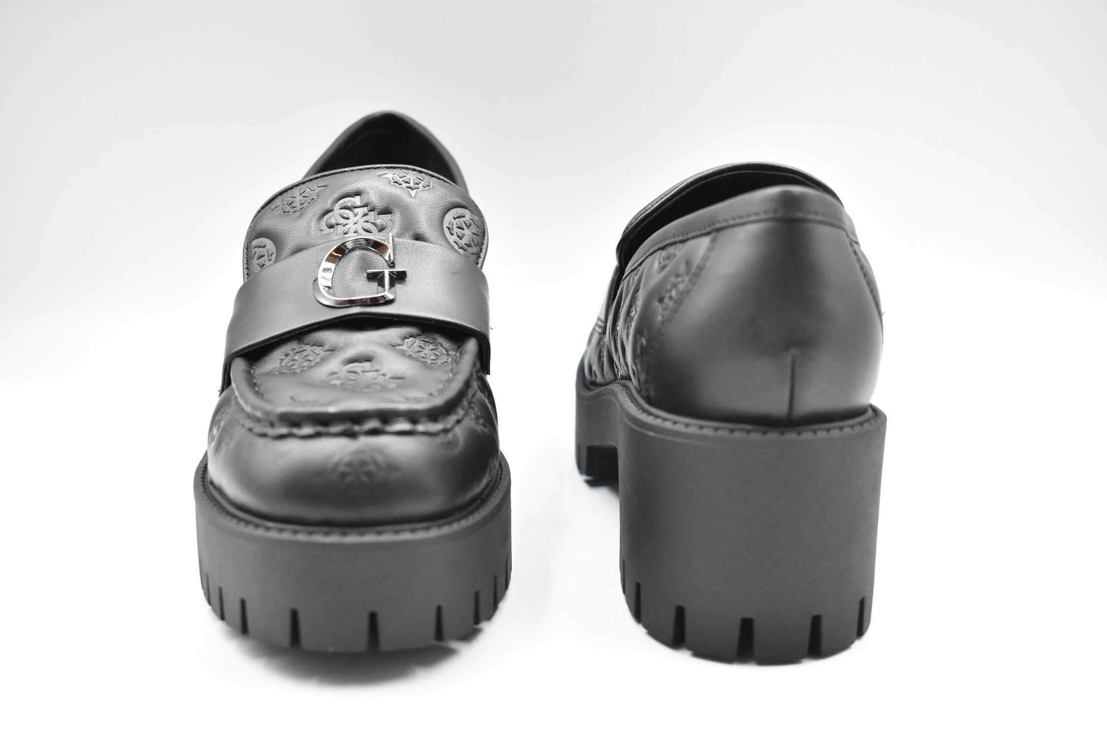 Step out in style with these black Guess flat shoes for women. The perfect addition to your shoe collection, these laced shoes are both stylish and comfortable. Elevate your look with these chic and versatile shoes from GUESS.