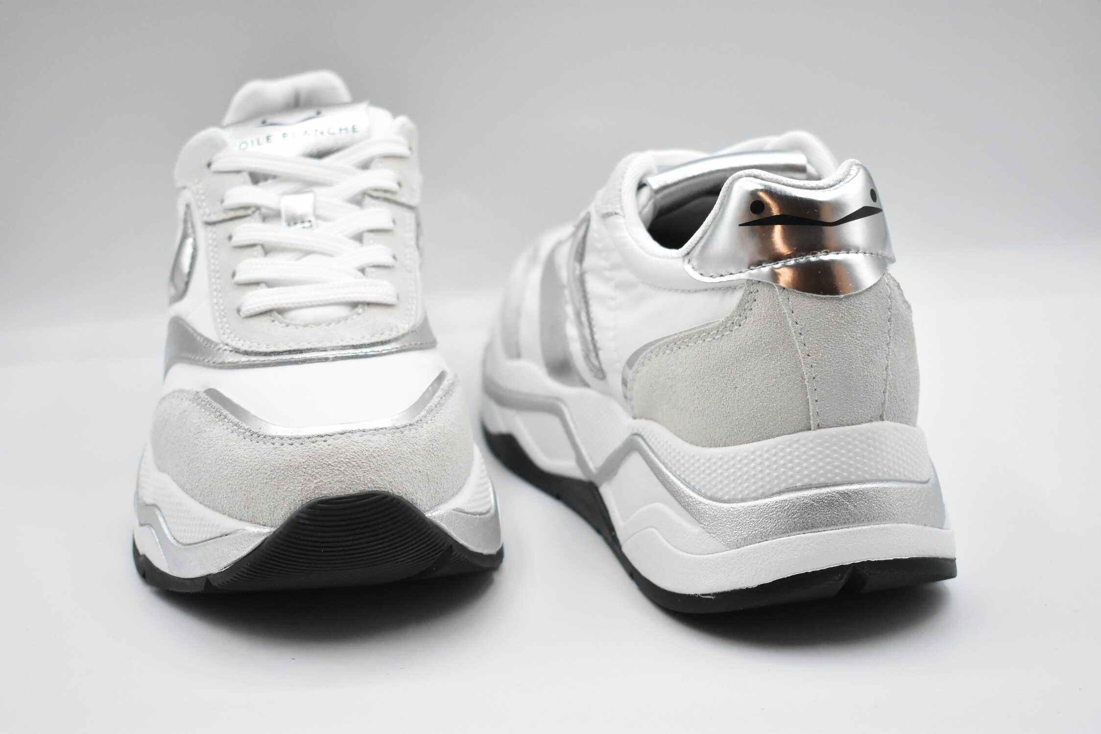 Step out in style with these elegant Voile Blanche Flat Shoes in Silver. Perfect for the fashion-forward woman, these laced shoes are a must-have for any wardrobe. Embrace sophistication and comfort with every step you take. Elevate your look with Voile Blanche.