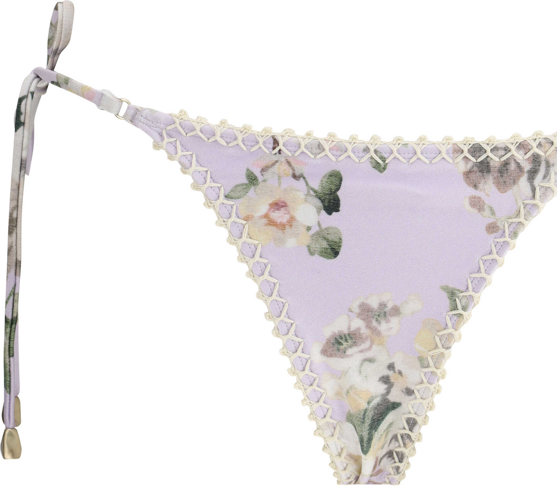 Zimmerman Swimsuit, bikini model, triangle top, back closure with ribbon ties, adjustable bottom with side ties, all-over floral pattern.