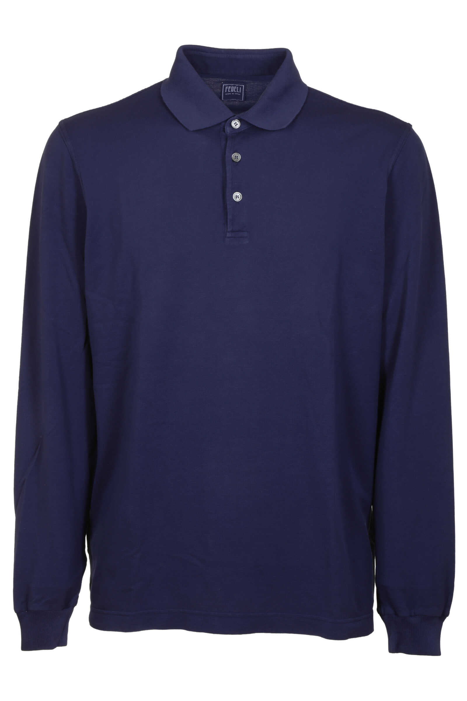 Fedeli White cotton polo shirt, long sleeves, button closure, buttoned cuffs.