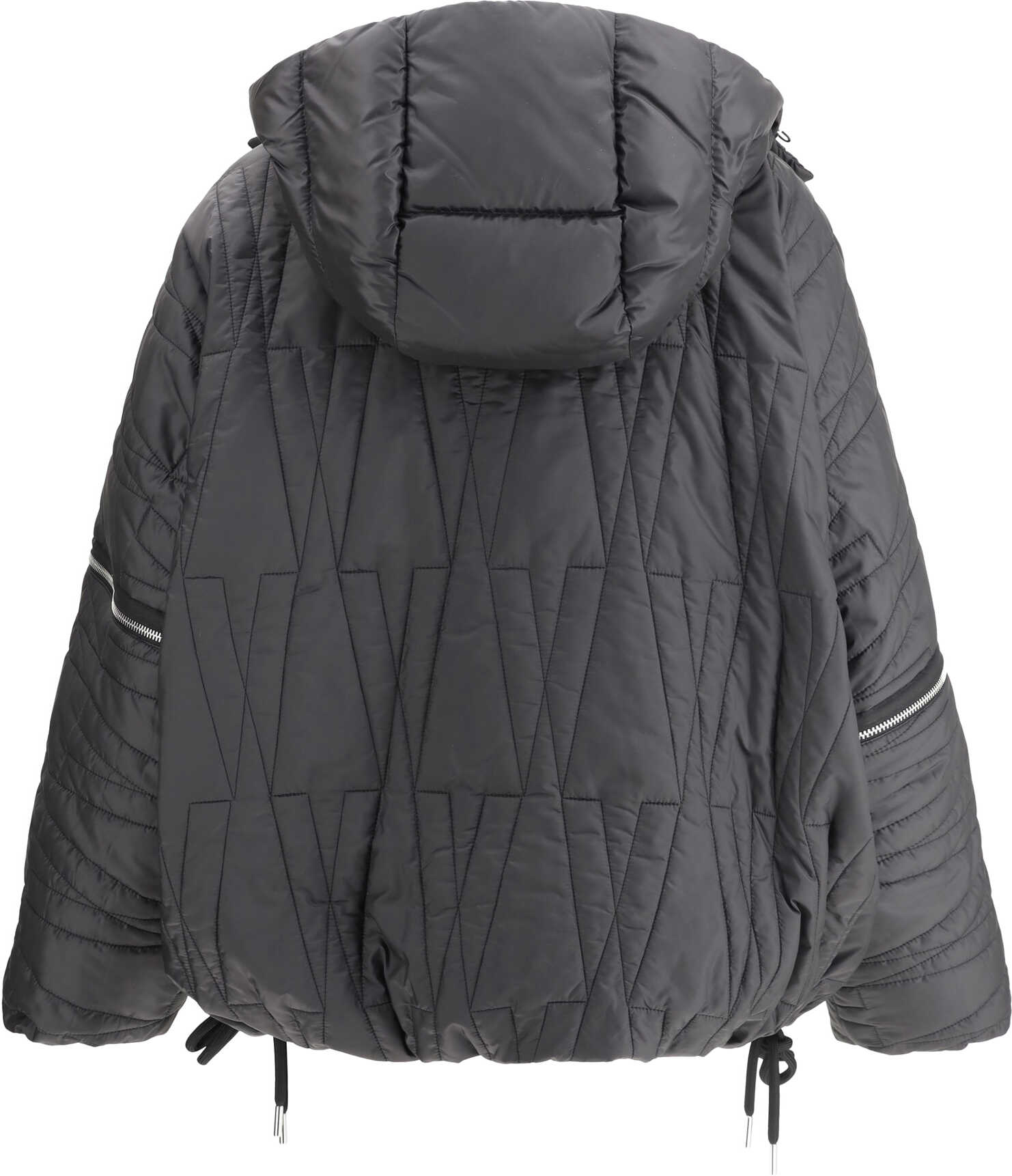 Haissa Down Jacket by Moncler x Willow Smith, hood removable via snap buttons and embellished with contrasting maxi eyelets, front closure with double-slider zipper, two side welt pockets, adjustable drawstring hem, the sleeves of this jacket through a lap zipper have the ability to transform the garment, iconic brand logo patch applied on the left sleeve, elastic cuffs, all-over quilted and padded design, loose fit.