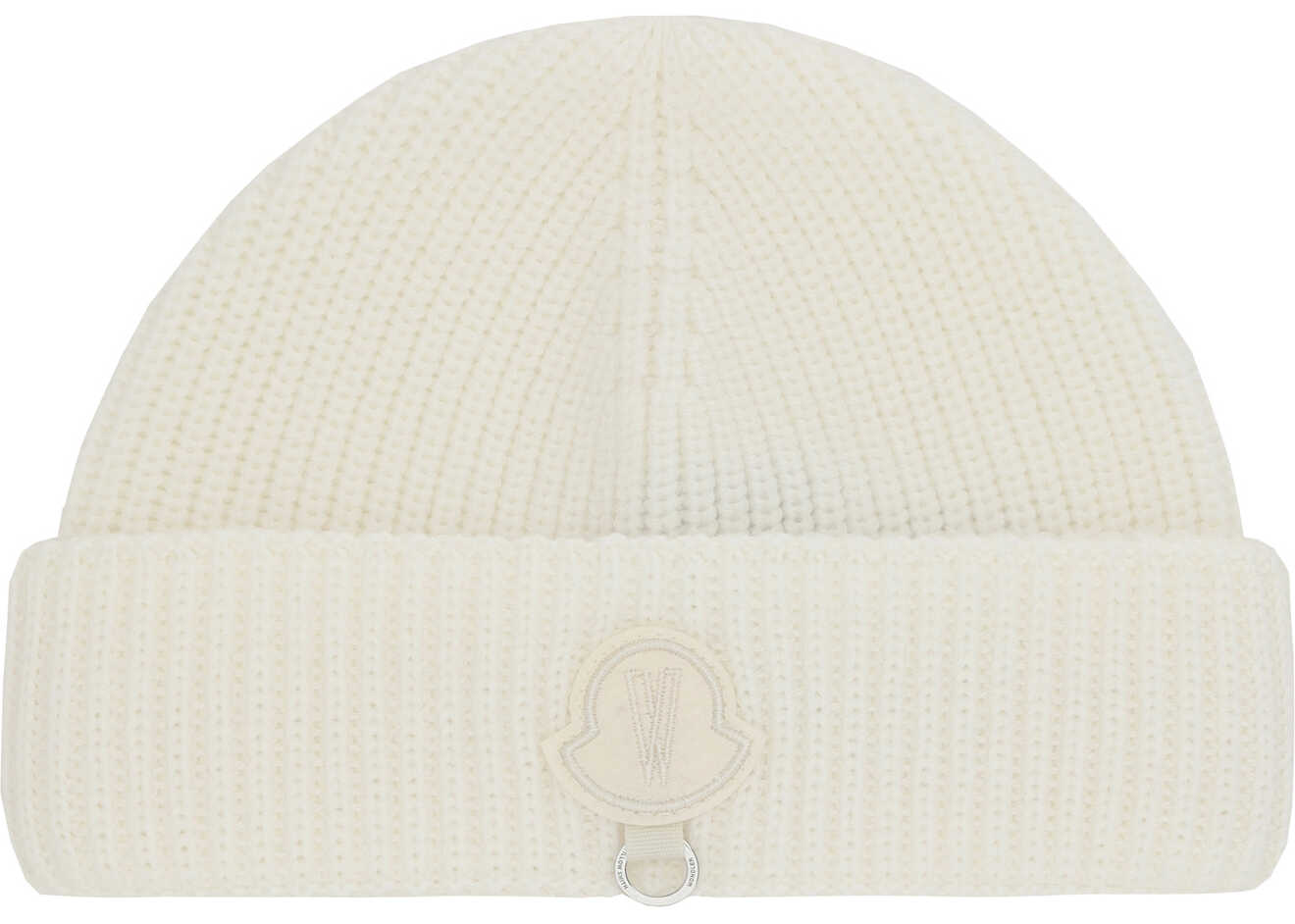 Wool Beanie Hat Moncler x Willow Smith, all-over ribbed design, base with lapel, brand's iconic logo patch applied on the front.
