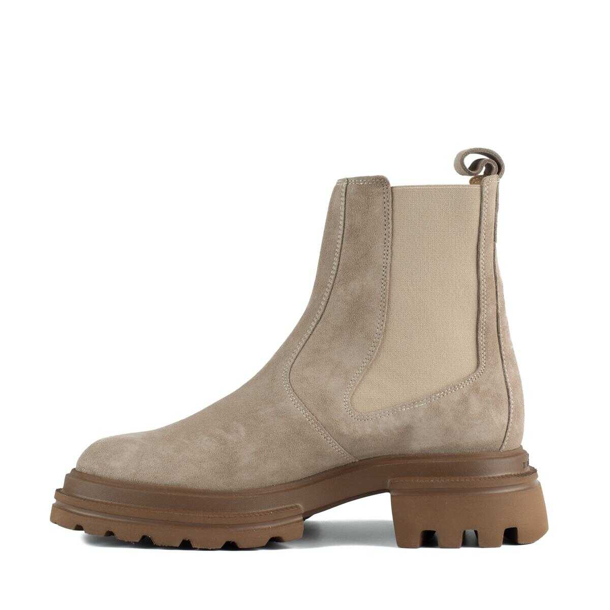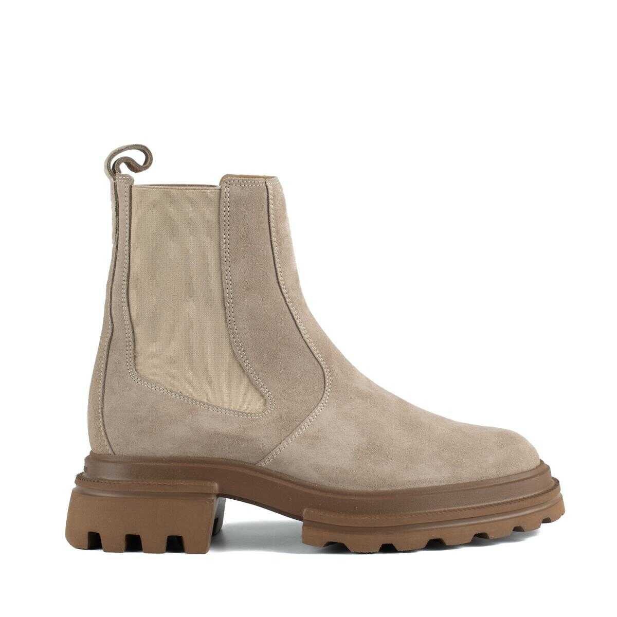 Item Color: Beige | Made in Italy | Epitome of contemporary urban aesthetics and attitude, these Chelsea ankle boots have a new workwear-inspired, two-island extralight sole | Made of suede, they feature a streamlined upper with side elastic inserts and an eyelet on the back.Complemented by a soft sockliner, they are a punchy model for your everyday look | Chelsea Ankle Boots Hogan 10-Storey women's | Suede upper | Side elastic inserts | Soft 5 mm sockliner | EVA soleTotal height 5.5 cm