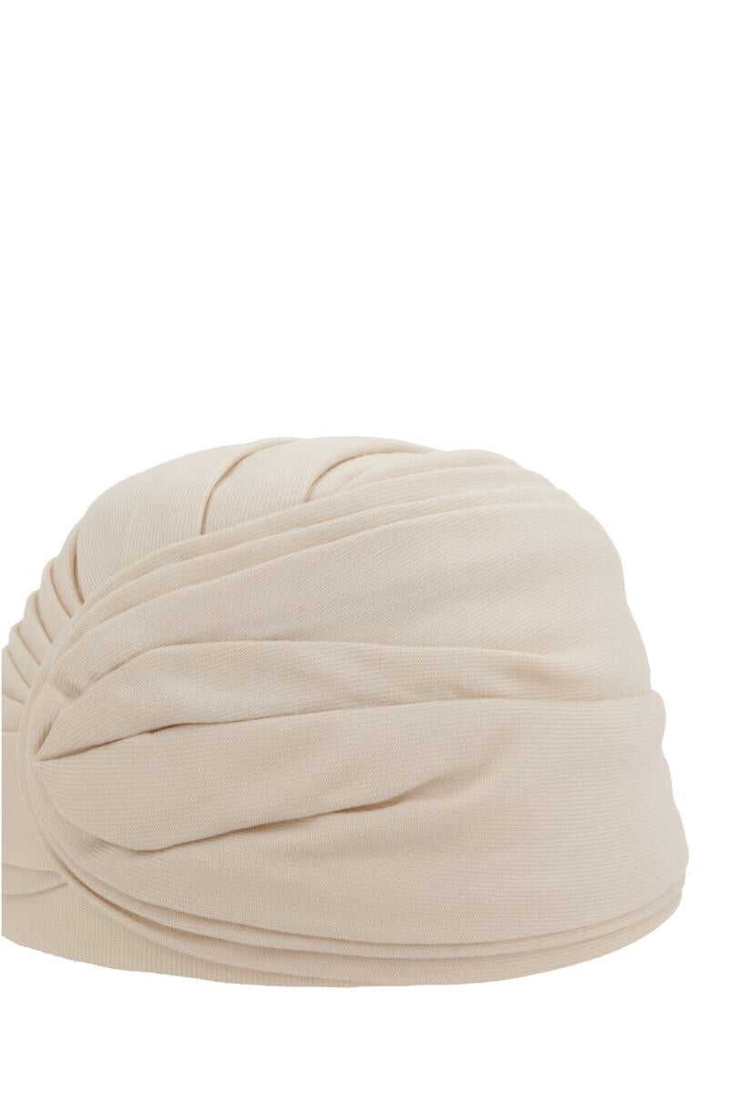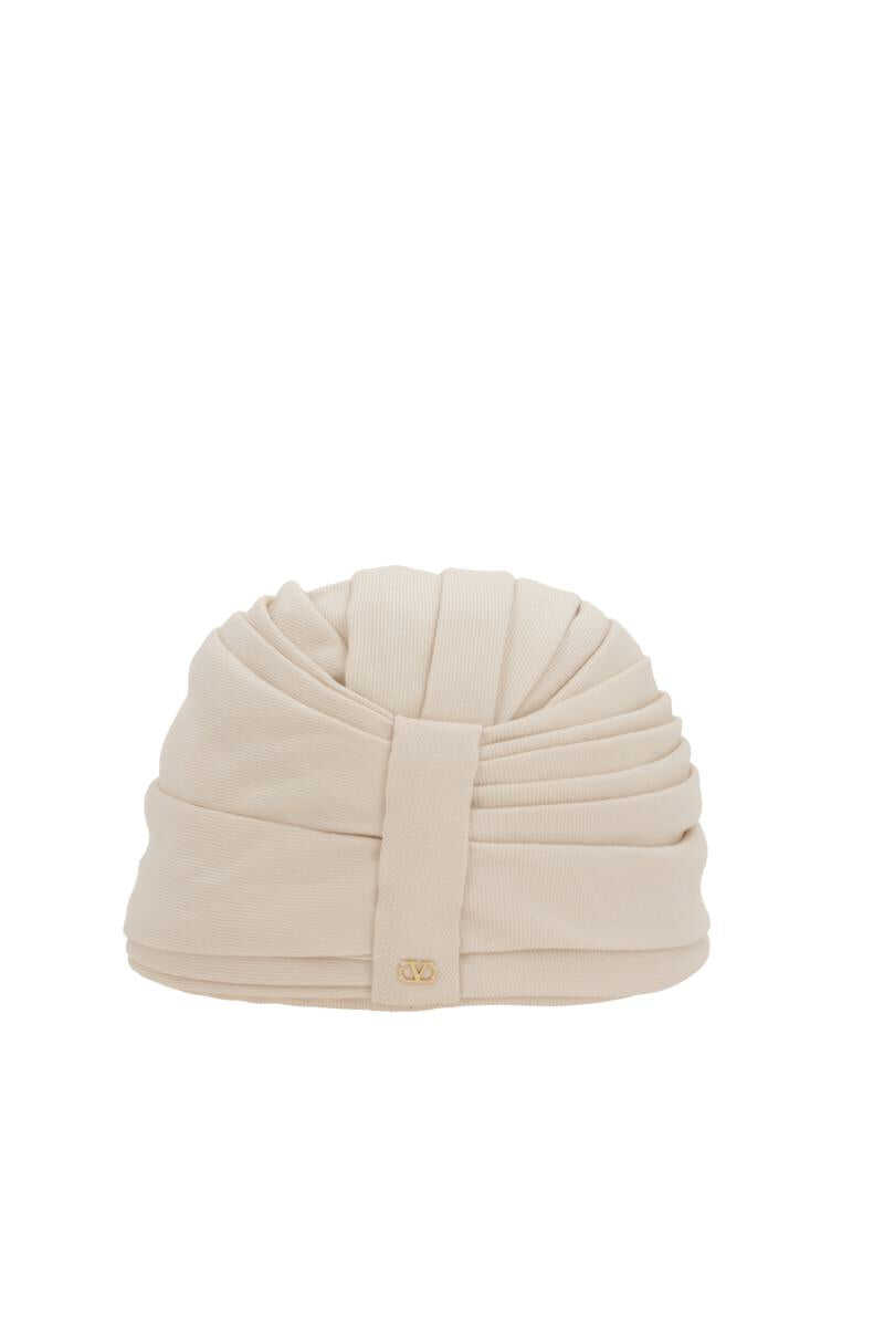 Valentino Garavani rigid turban crafted in ivory wool and embellished by gold-tone metal VLogo Signature detail. Lined interior.