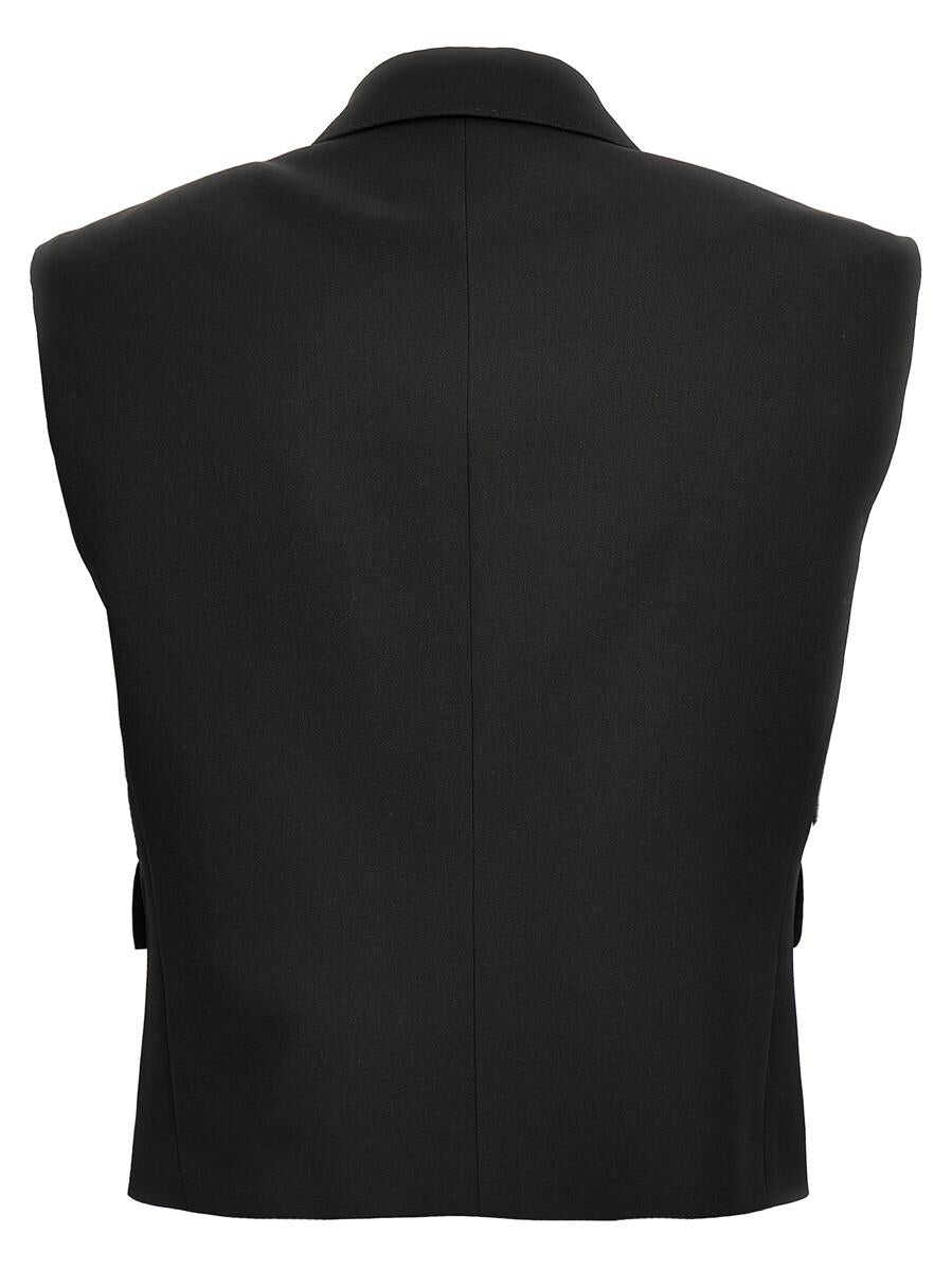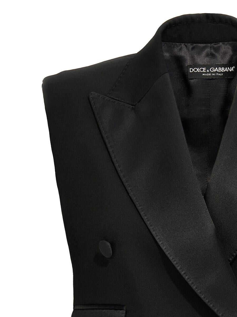 Tuxedo vest in wool gabardine, satin peak lapels, double-breasted style with button closure and padded shoulders