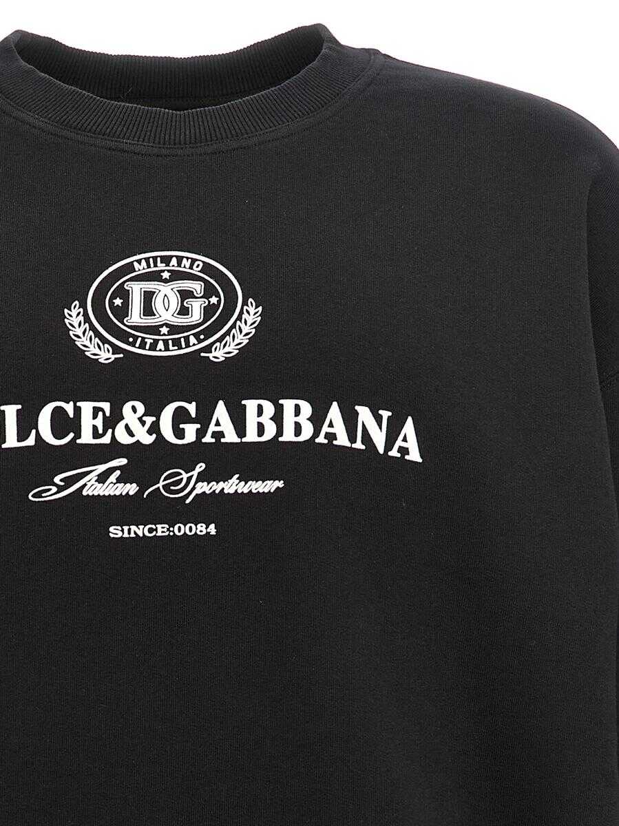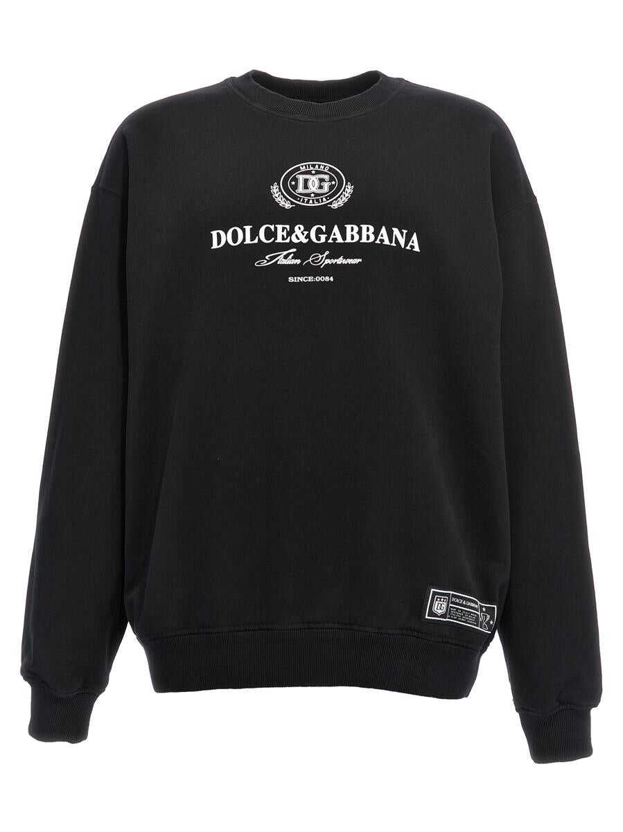 Cotton sweatshirt with front flocked logo, crew neck, long cuffed sleeves