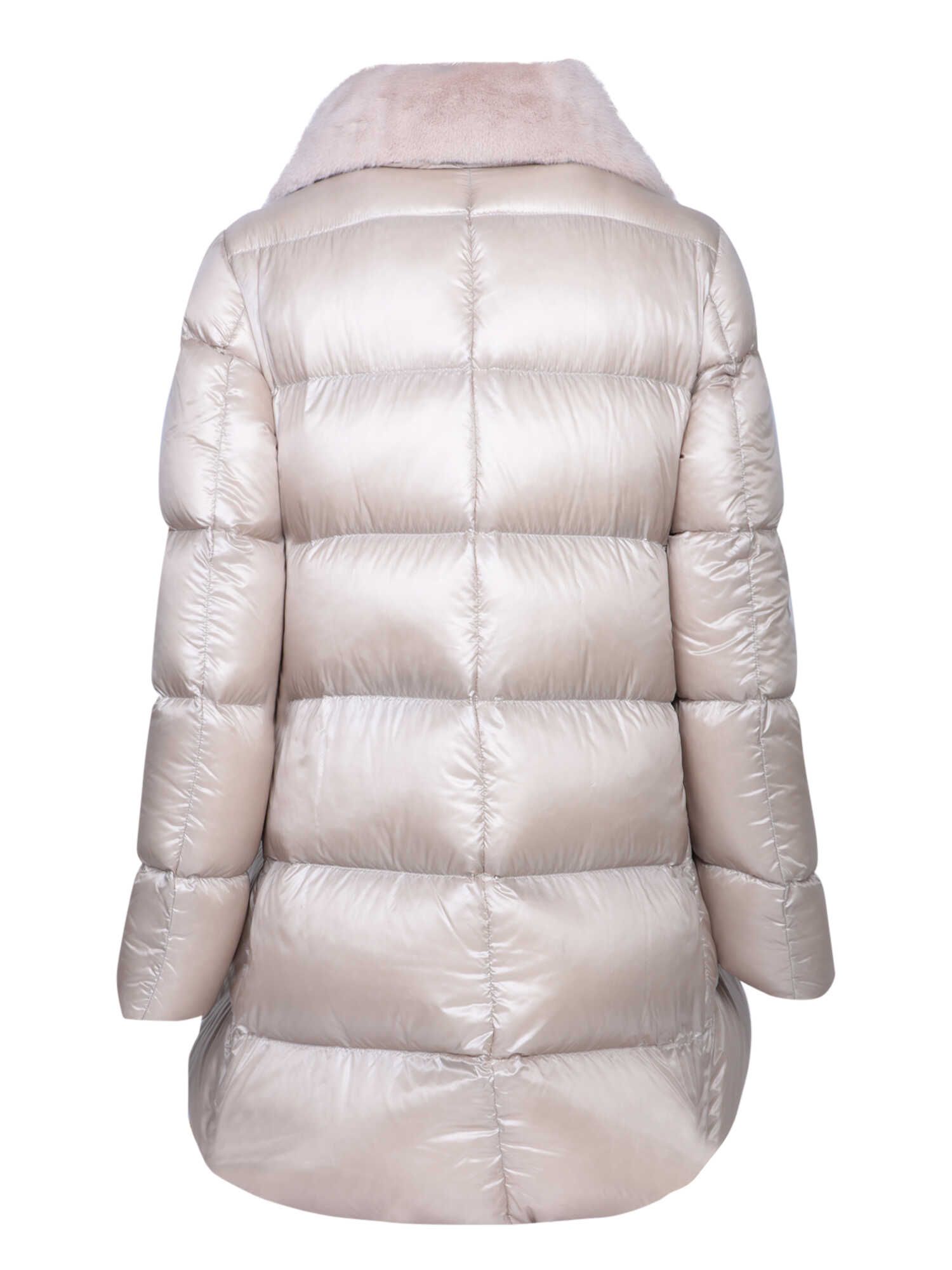 Stay warm and stylish with this elegant Beige HERNO Down Jacket. Made of 100% Polyamide, featuring a luxurious fur collar and front zip closure, this jacket is perfect for braving the cold in style. The A-shape design provides advanced warmth and comfort, making it a must-have for your winter wardrobe.