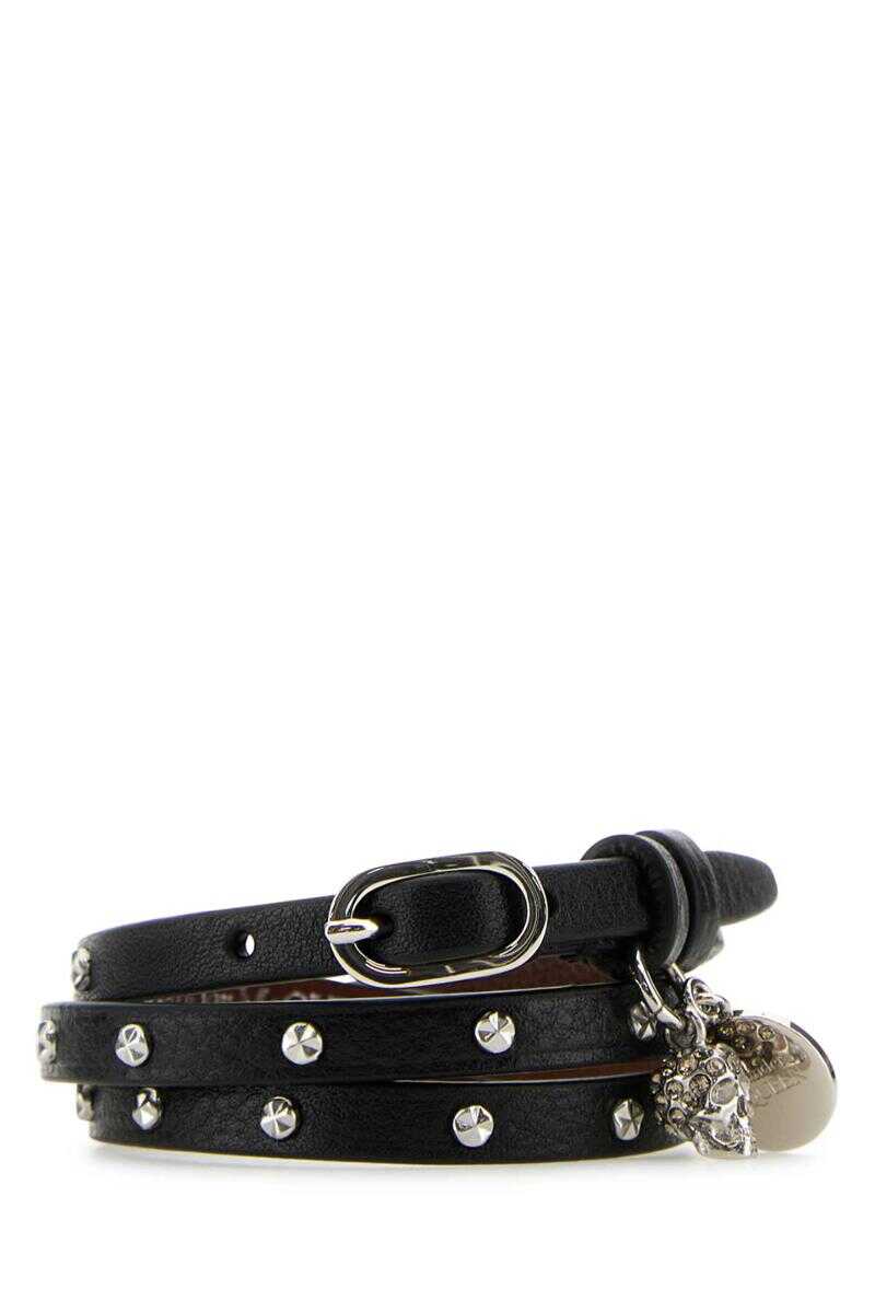 Black leather bracelet Min circumference: 49,5 cm Max circumference: 54 cm