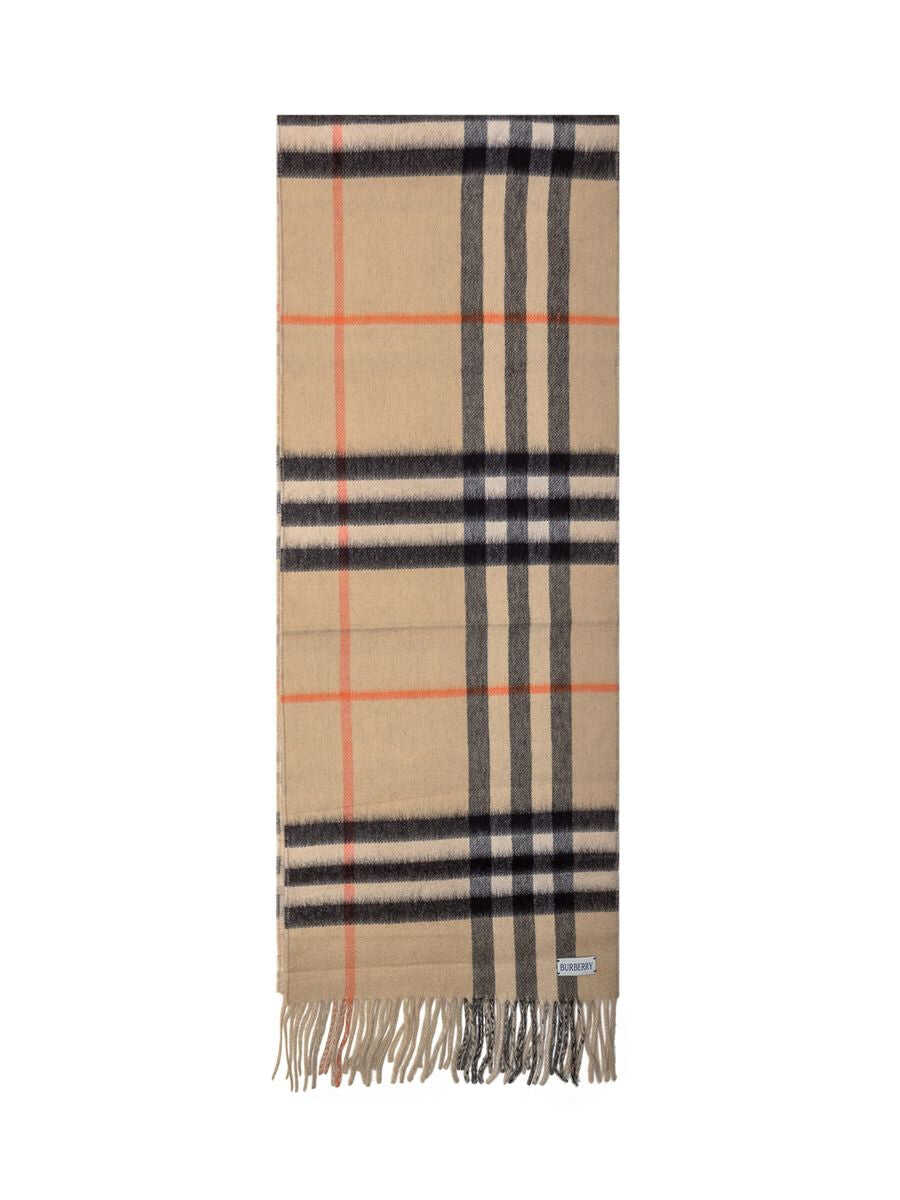 Cashmere scarf with Burberry Check all-over pattern. Fringed bottom.