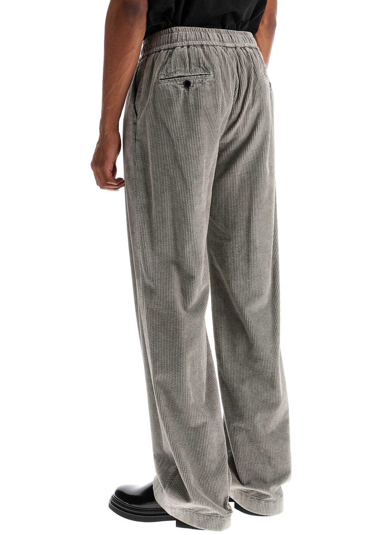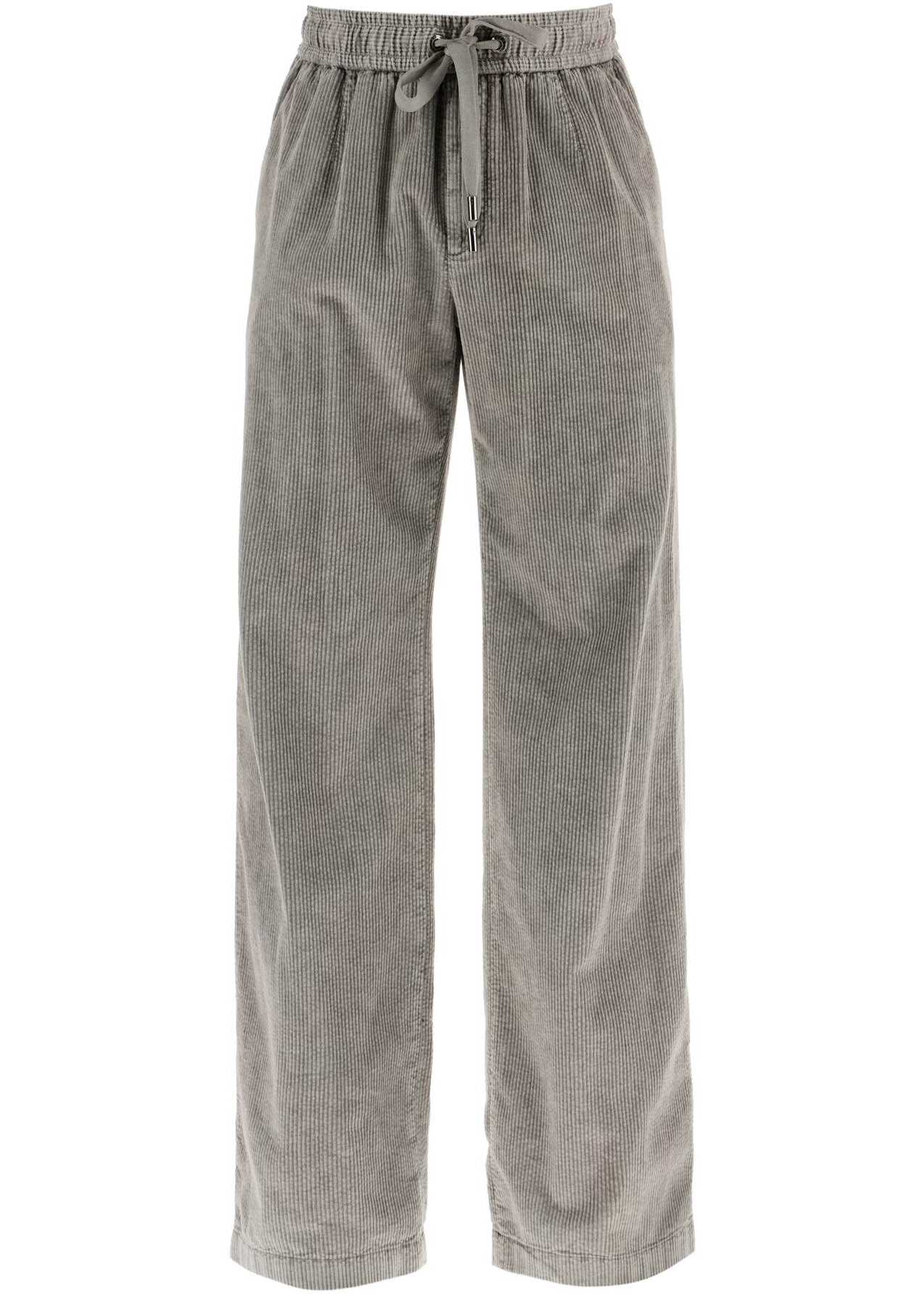 Crafted in lightweight stretch cotton corduroy, these Dolce & Gabbana pants feature a jogger-inspired design with a straight and relaxed fit and an elasticated drawstring waist. Two slanted side pockets, two back welt pockets with button closure, and a hidden front zip complete the design. The model is 182 cm tall and wears an IT size 48.