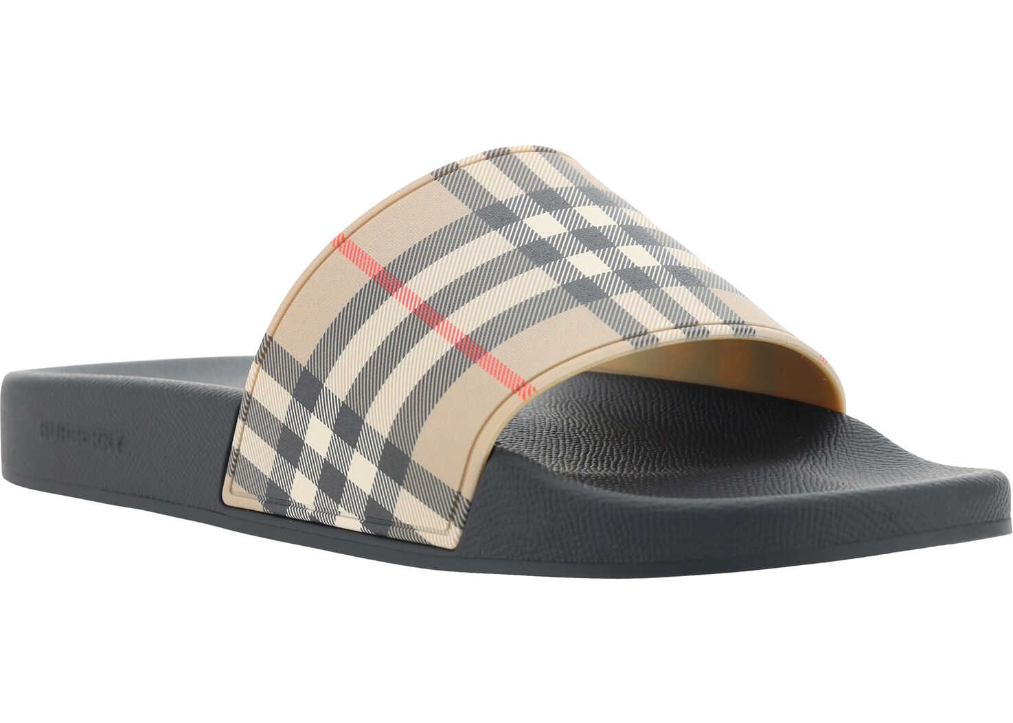 The Sandals by Burberry feature a clean, refined design defined by a wide front strap adorned with the brand’s iconic Archive Check pattern. The flat sole and rounded toe ensure comfort and ease of wear, while the pressure-applied logo on the insole adds a subtle yet distinctive finishing touch.