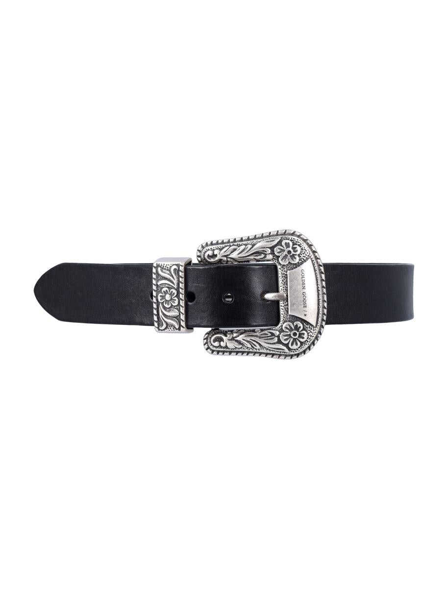 Washed leather Decorated silver buckle belt by Golden Goose.